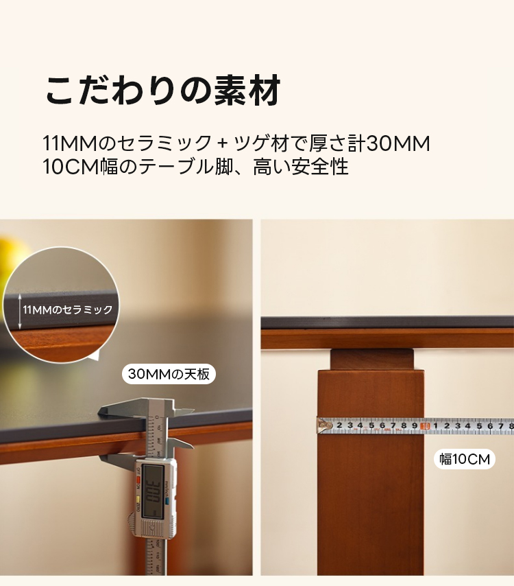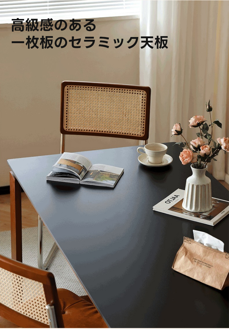 - 【高品質な素材とデザイン】北米産FASグレードのツゲ材を使用し、耐久性と美しさを兼ね備えています。セラミック天板は滑らかなマット仕上げで高級感を演出し、角が丸く加工されているため安全に使用できます。