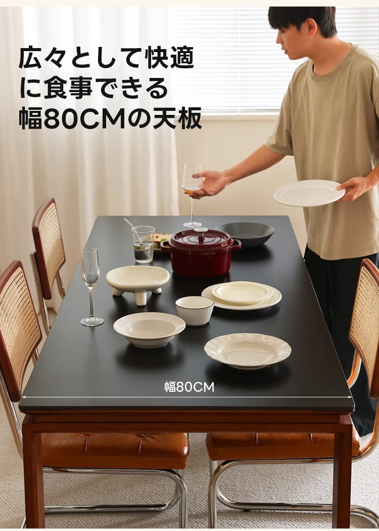 - 【多様な使用シーンに対応】幅80cmの広々とした天板は、家族や友人との食事や作業スペースとしても十分な広さを提供します。ダイニングルーム、リビングルーム、書斎など、さまざまな場所での使用に適しています。