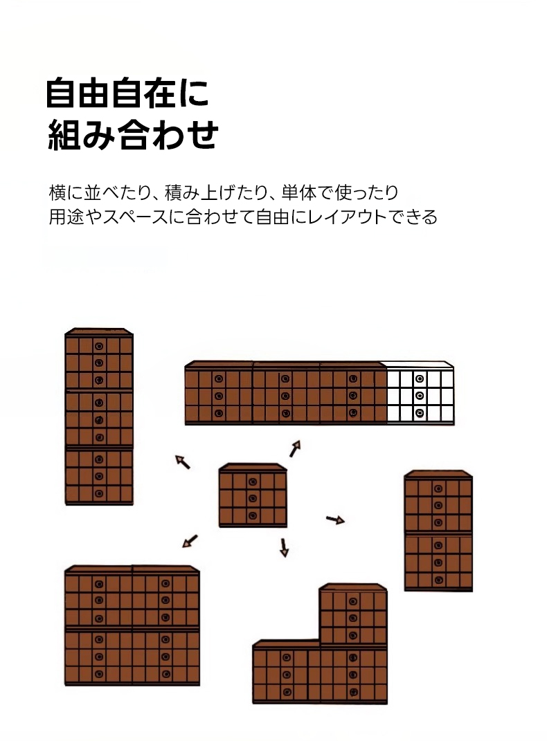 - 【多段収納で自由自在なレイアウト】このキャビネットは、横に並べたり積み上げたりと自由にレイアウトを変更可能。リビングや寝室、書斎など様々な空間に自然に溶け込みます。一人暮らしからファミリーまで幅広く対応し、生活シーンに合わせてカスタマイズ可能です。