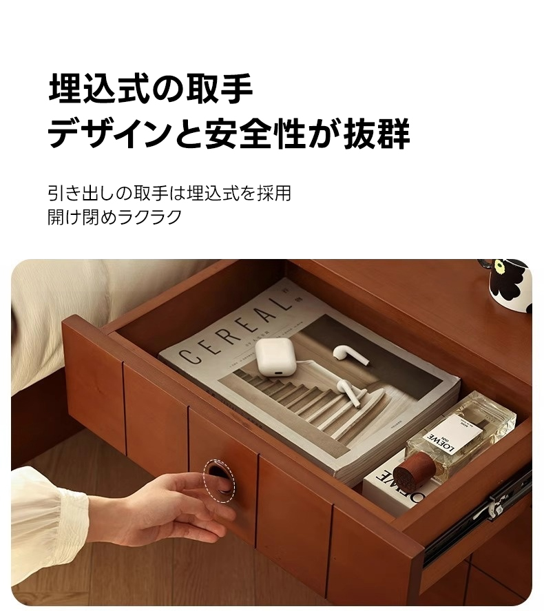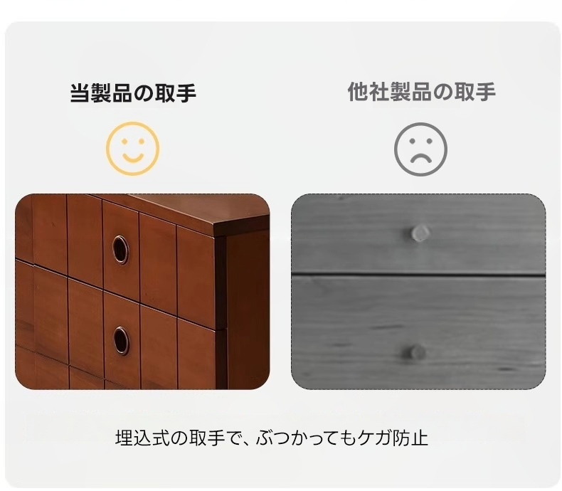 - 【高級ツゲ材と美しいデザイン】北米産FAS級ツゲ材を使用した高級感あふれるヴィンテージスタイル。温かみのあるブラウンカラーが、どんな空間にも自然に溶け込みます。埋込式の取手はデザイン性と安全性に優れ、ぶつかっても怪我を防ぎます。
