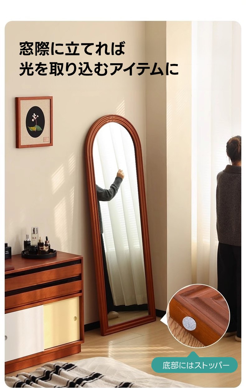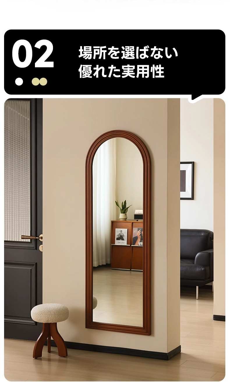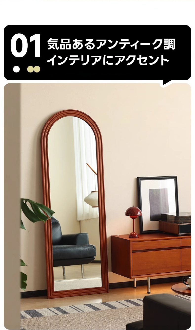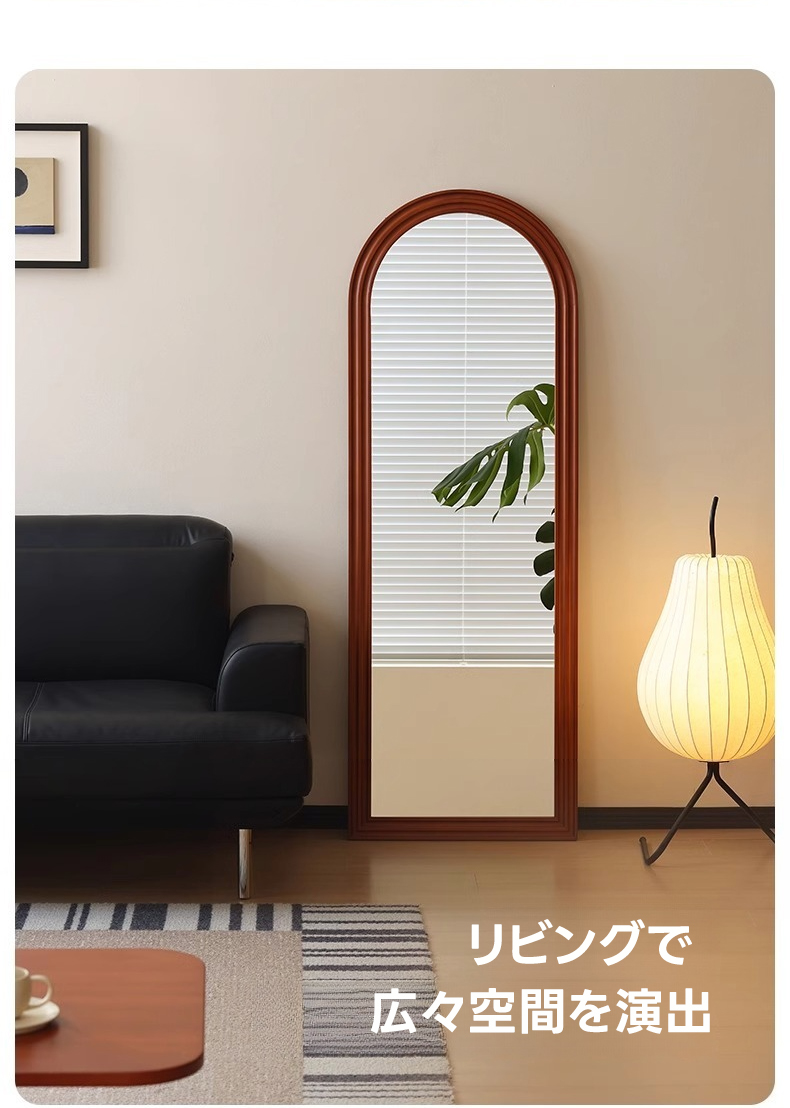 - 【エレガントなデザイン】このアンティーク調アーチミラーは、洗練されたデザインが特徴で、どんなインテリアにも自然に溶け込みます。ヴィンテージスタイルのブラウンカラーが空間にクラシックな雰囲気をプラスします。