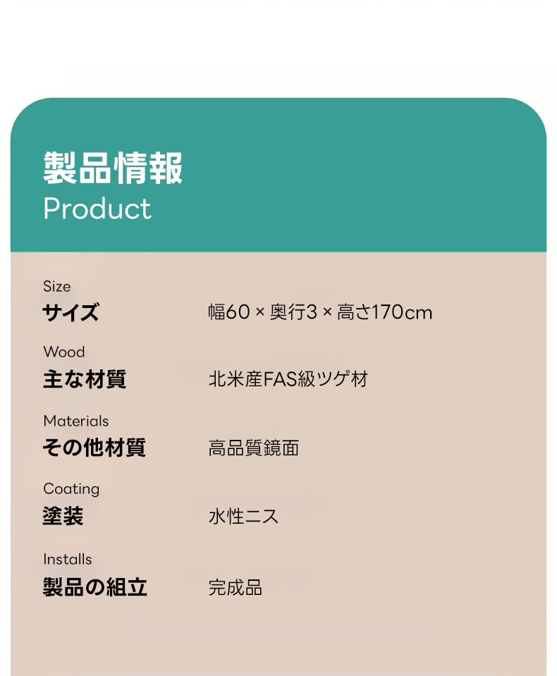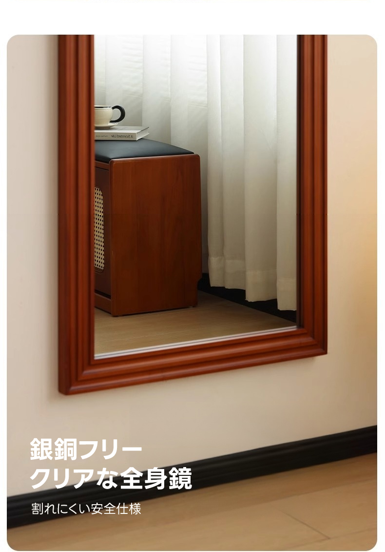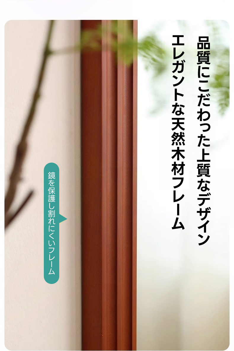 - 【高級素材と品質】北米産FAS級の高級ツゲ材を使用し、耐久性と美しさを兼ね備えたフレーム。高品質な鏡面で、歪みのないクリアな映りを実現しています。