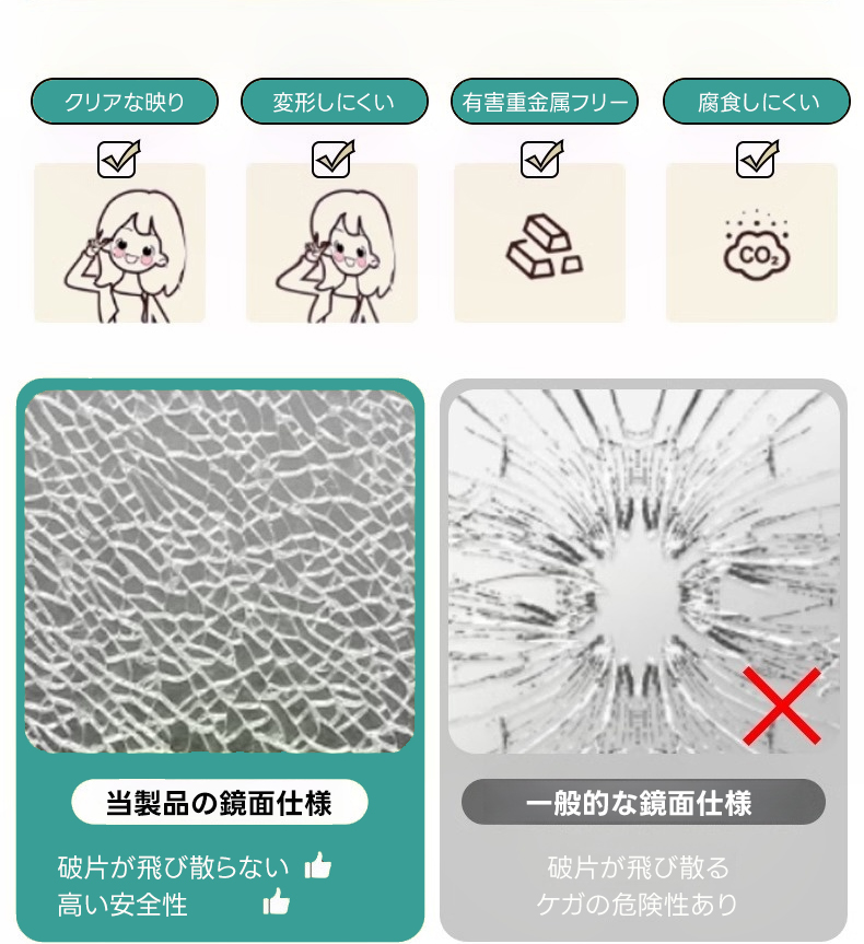 - 【安心の安全設計】割れにくい仕様で、万が一の際にも破片が飛び散らない安全設計です。ご家族やペットがいる家庭でも安心してお使いいただけます。