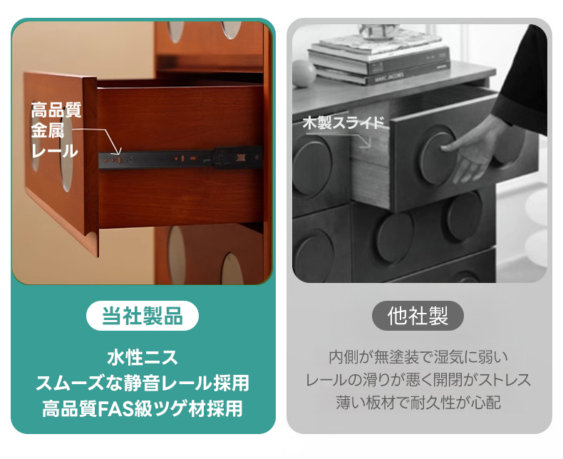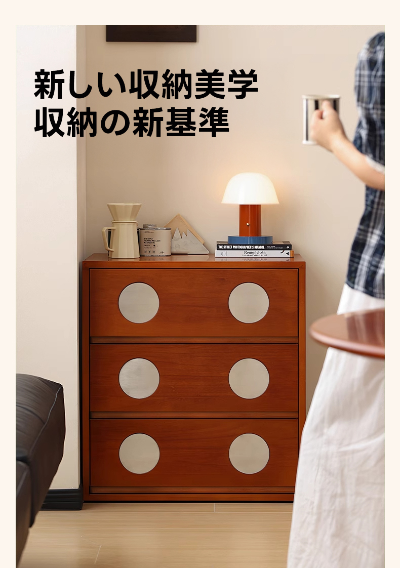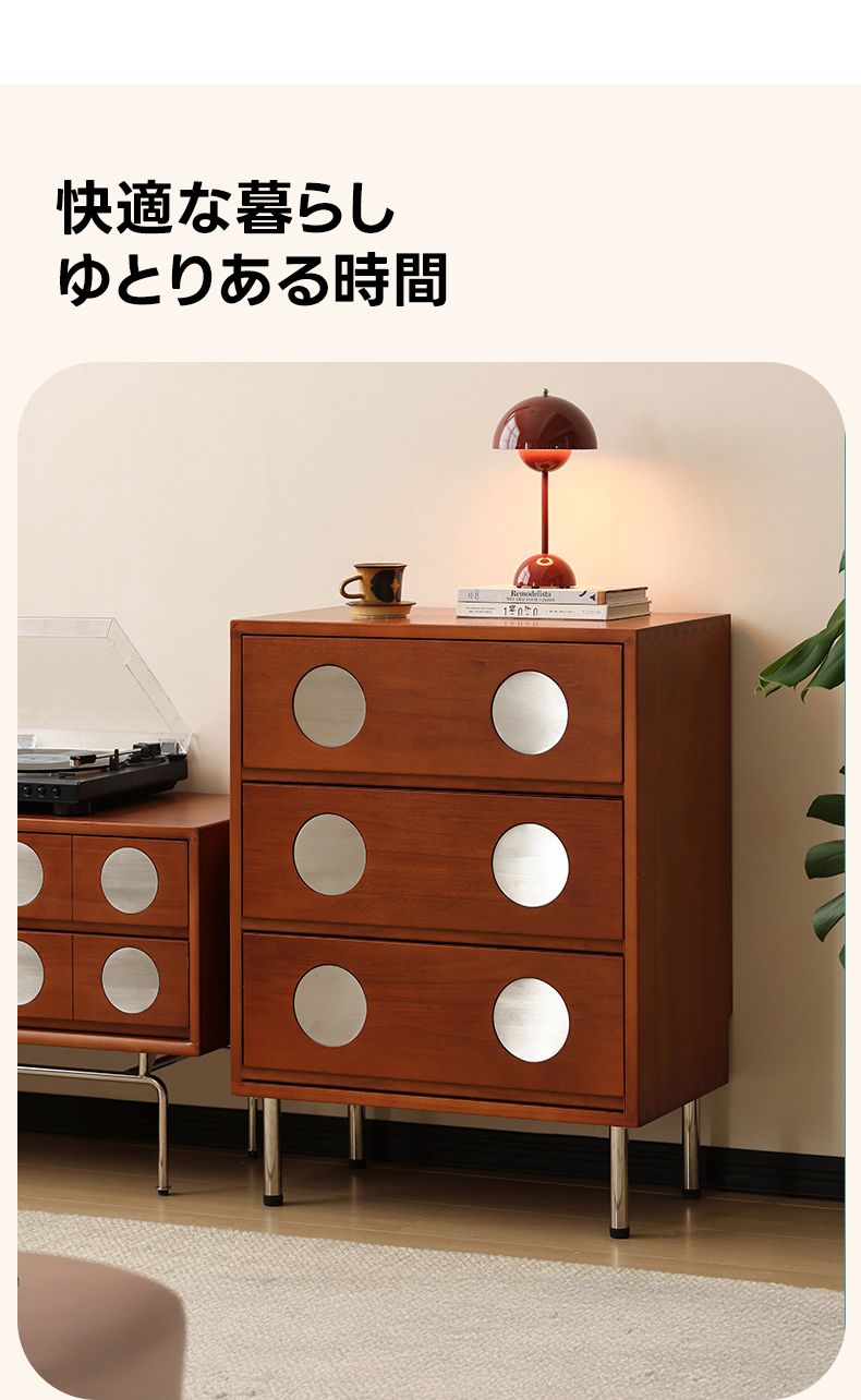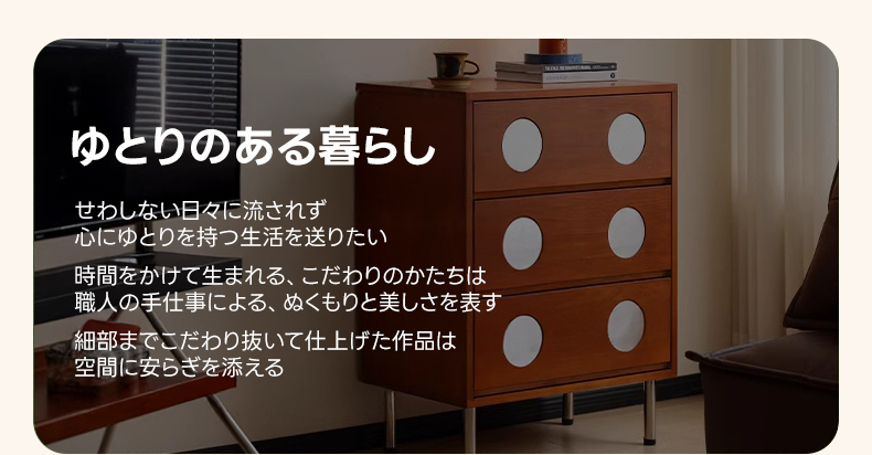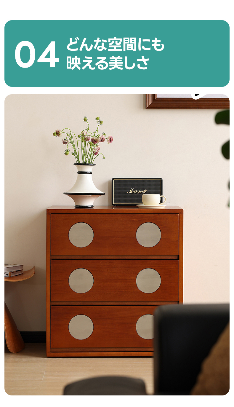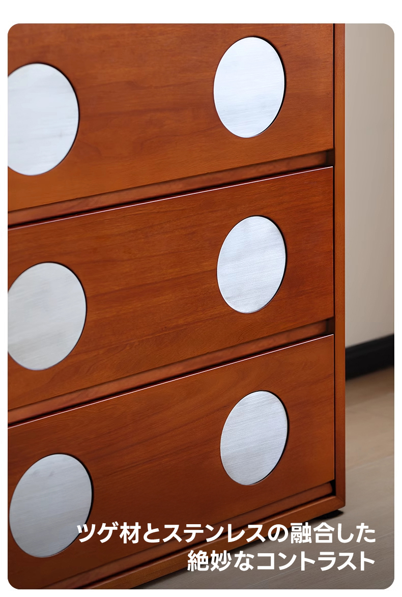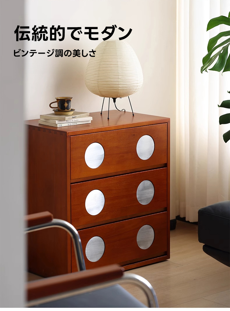 - 【高級素材使用で美しさと耐久性を両立】北米産FAS級ツゲ材と304ステンレスを使用したこのキャビネットは、長期間の使用にも耐える高い耐久性を誇ります。ヴィンテージ感漂うデザインがどんなインテリアにもマッチし、リビングや寝室に高級感をプラスします。