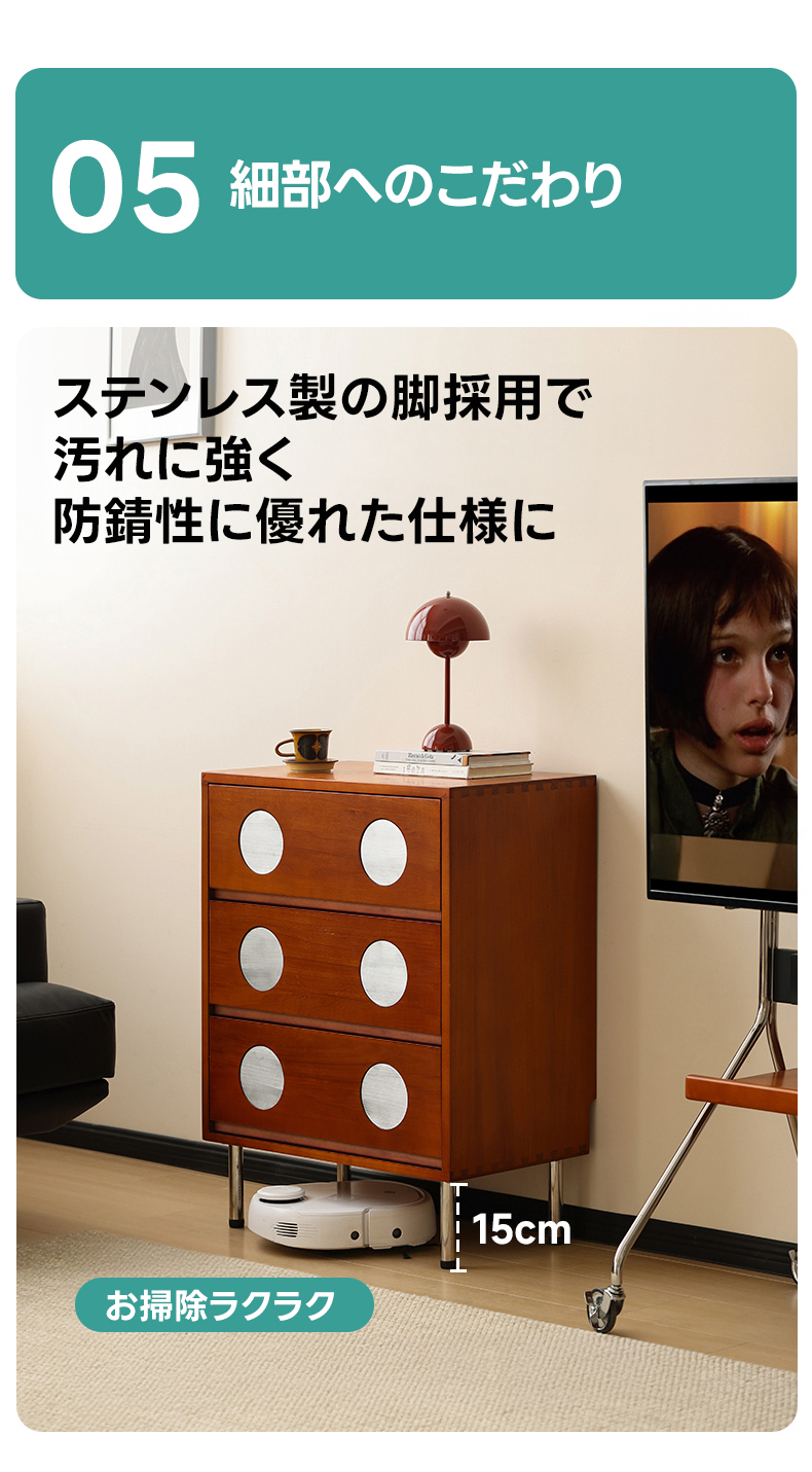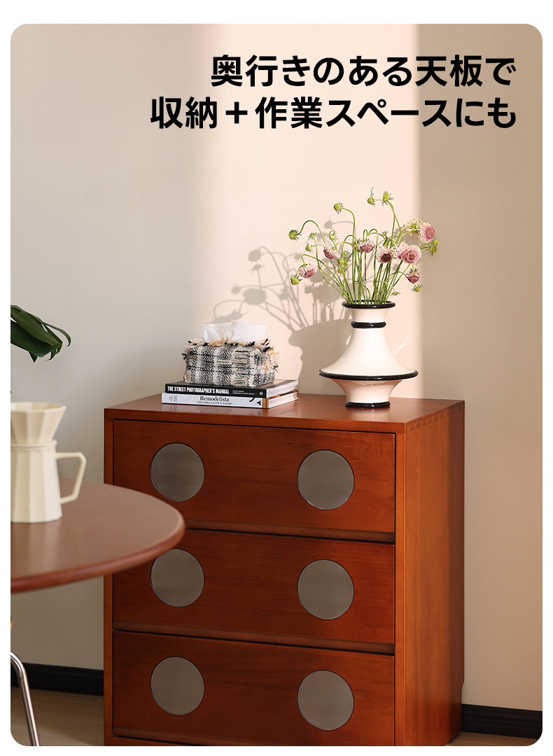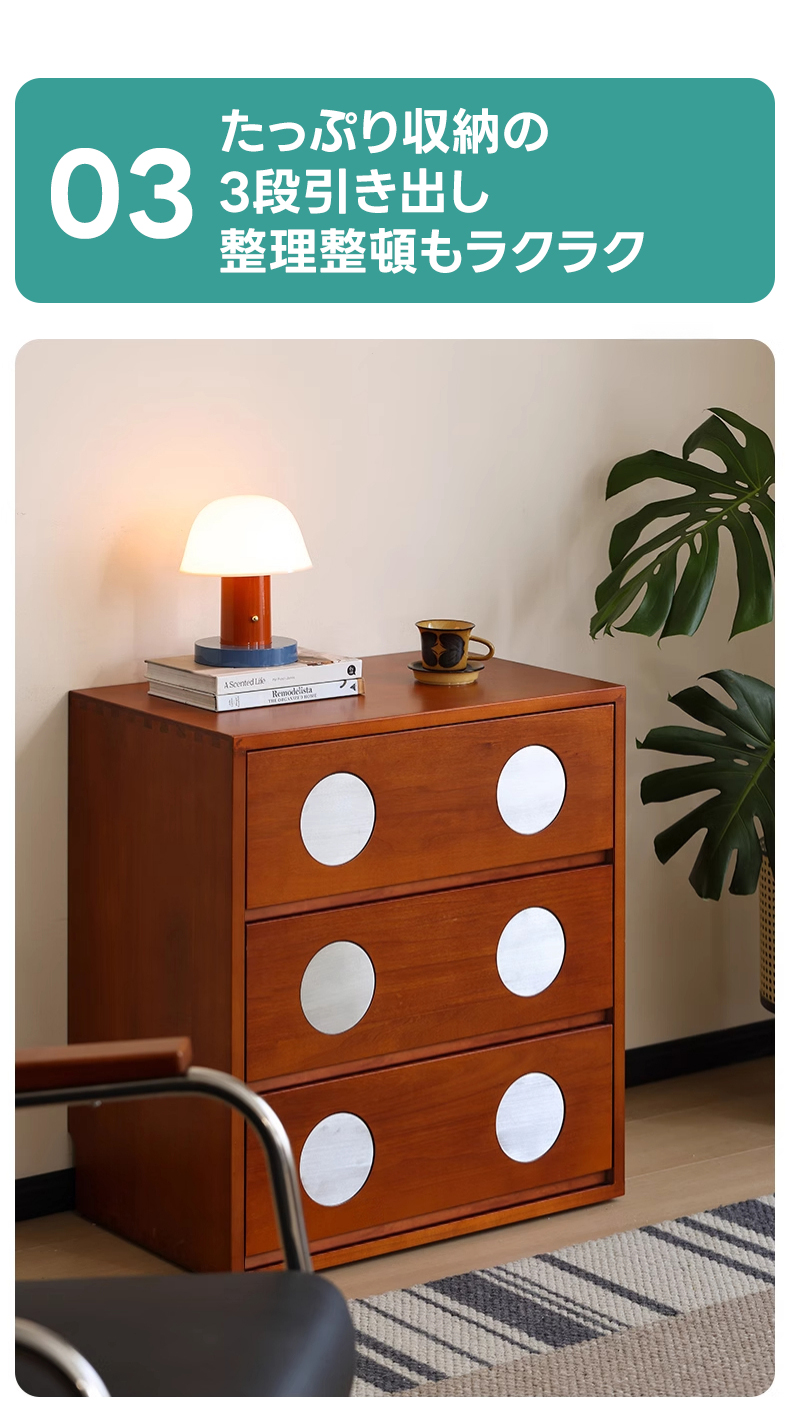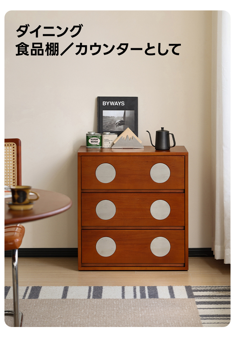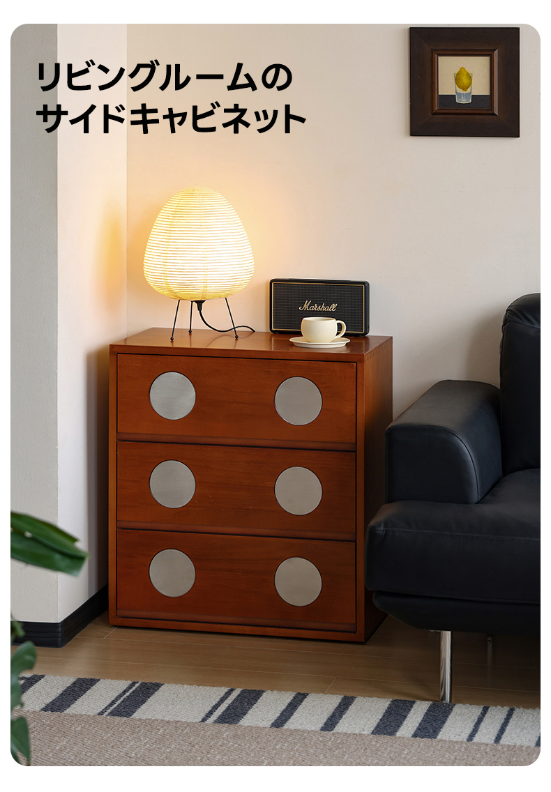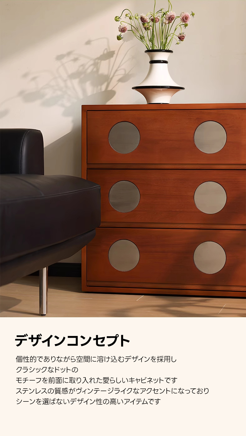 - 【細部にまでこだわったデザインと品質】クラシックなドットデザインがアクセントとなり、モダンな印象を与えます。幅40cmのコンパクト設計で、狭いスペースにもフィットし、北米産ツゲ材の細やかな木目と自然な色合いが魅力です。