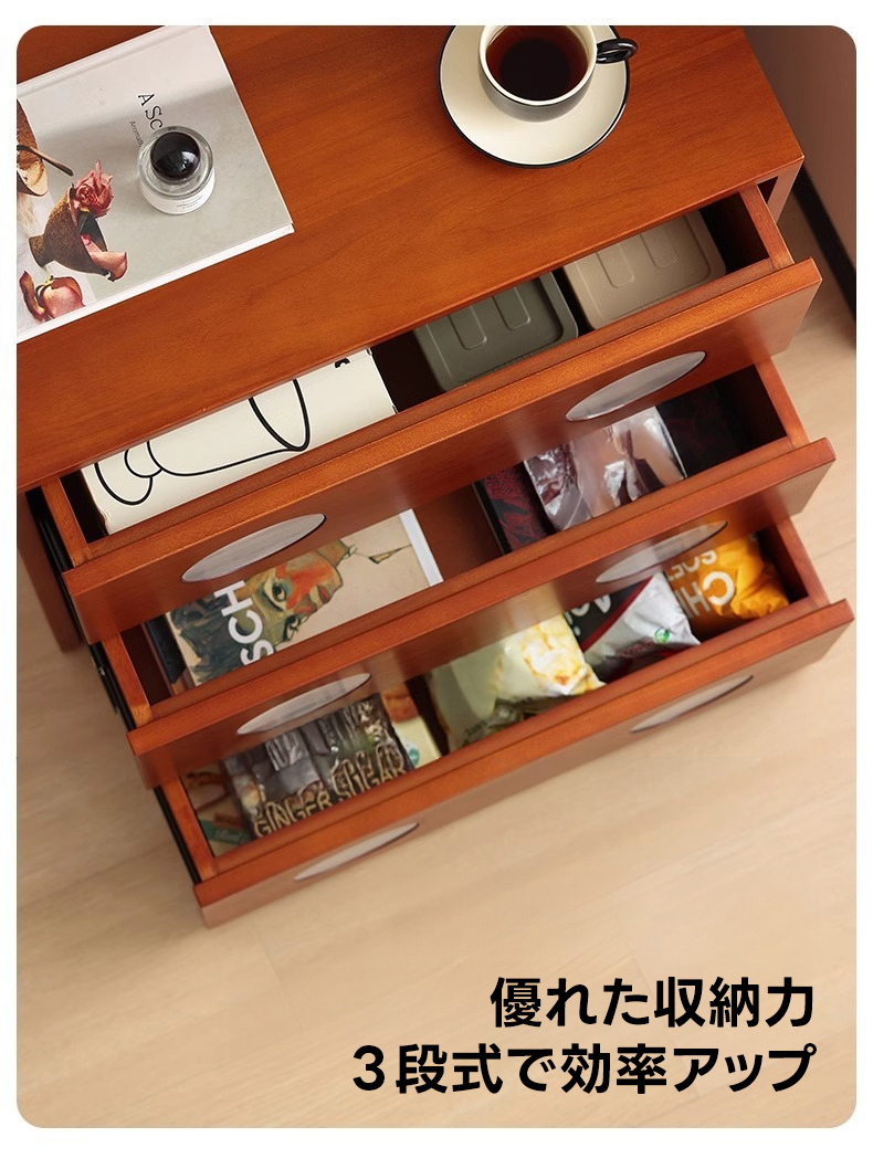 - 【快適な使用体験】:メタルレールを使用した引き出しは、スムーズな開閉を実現します。収納家具としてだけでなく、インテリアとしても空間に温かみと高級感を与え、日常生活をより豊かにします。