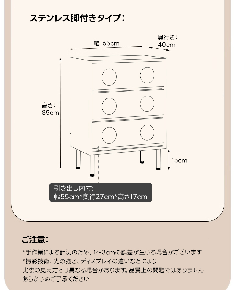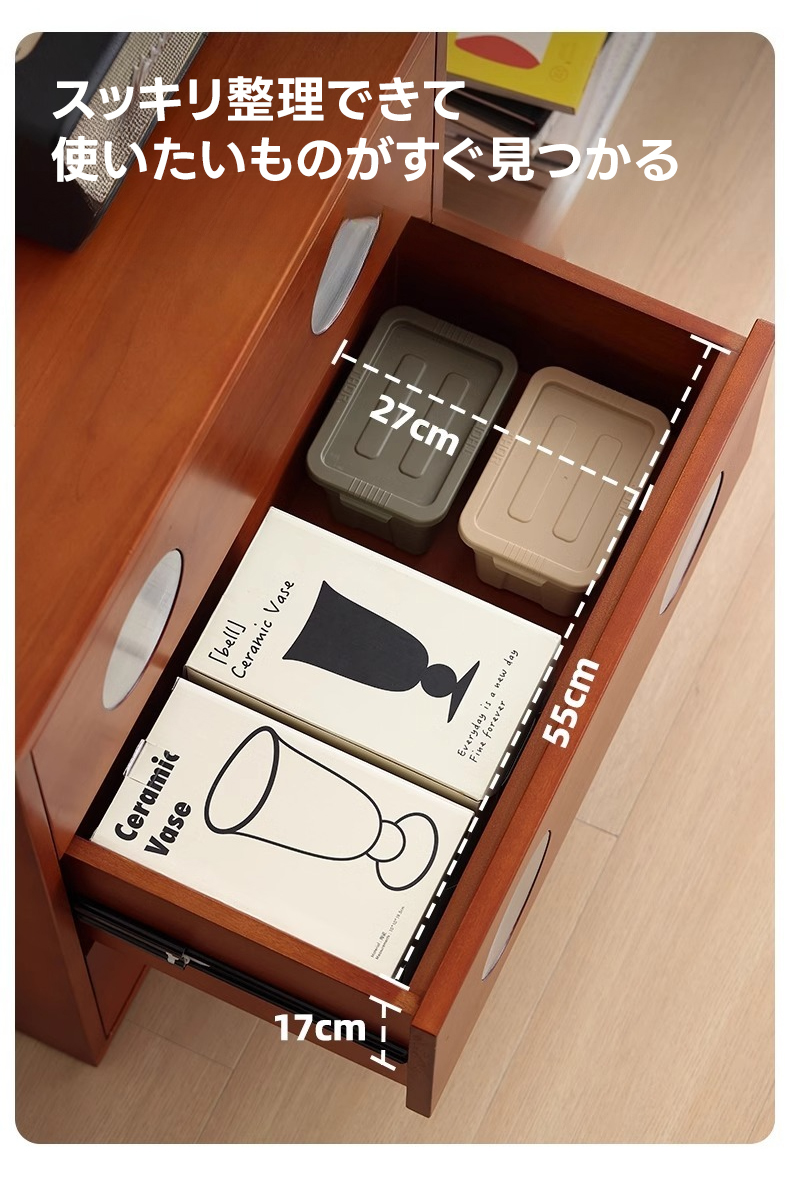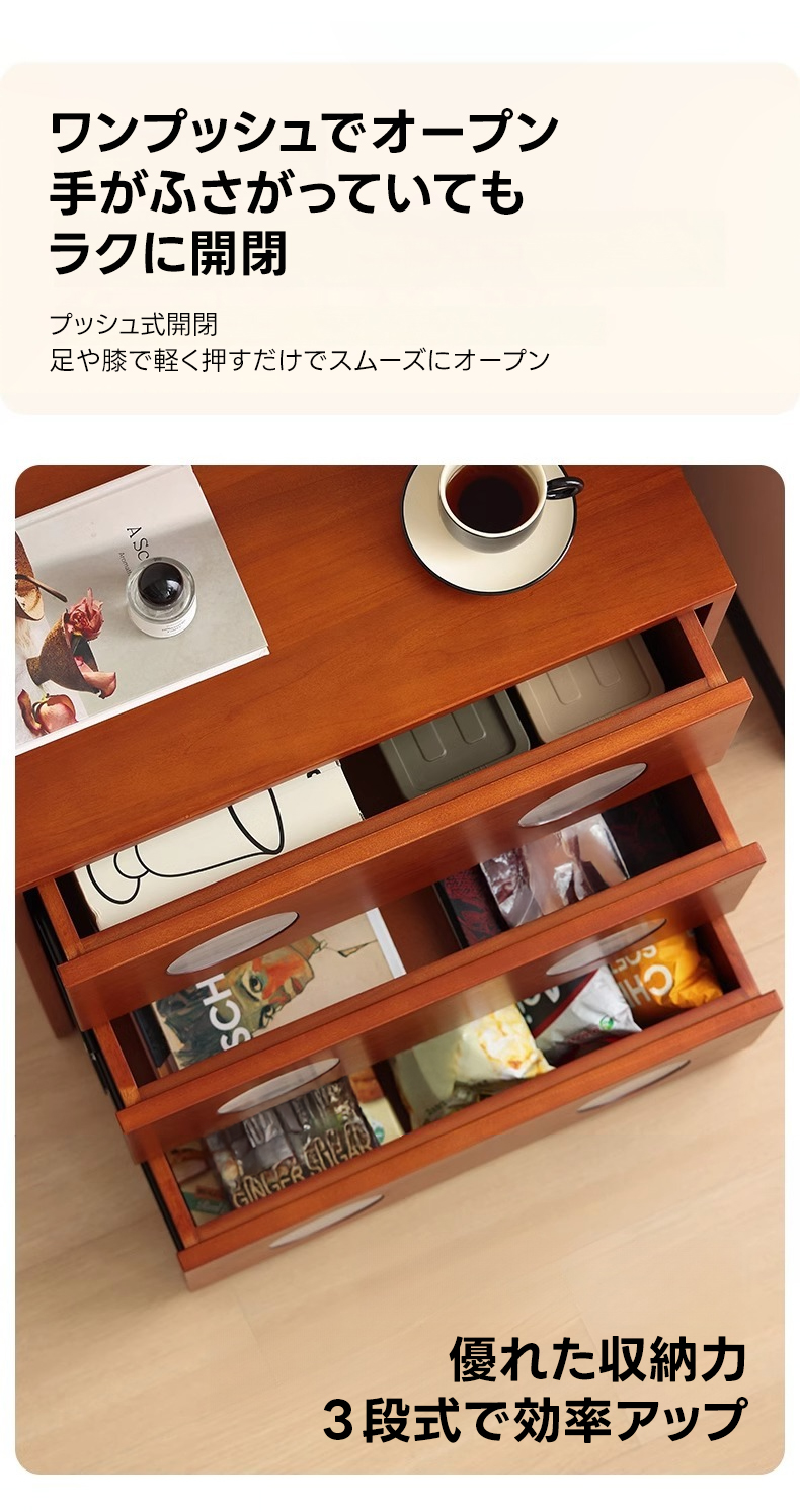 - 【使いやすさを追求した機能性】プッシュ式で簡単に開閉できるため、手がふさがっていてもスムーズに使用可能です。3段の引き出しがあり、幅55cm×奥行き27cm×高さ17cmの大容量で、整理整頓が簡単です。