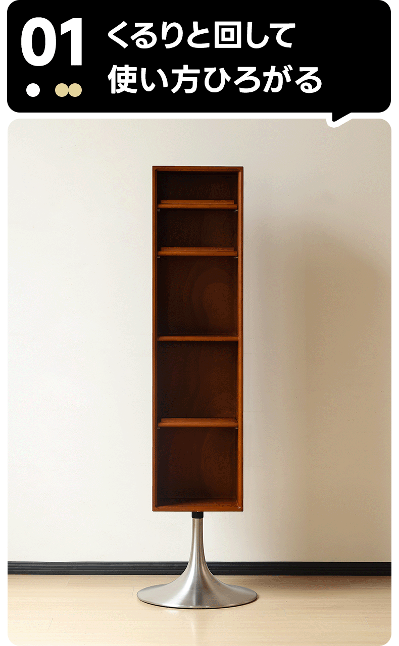 Woody Prime Vintage Box 360°回転式鏡付き収納ラック