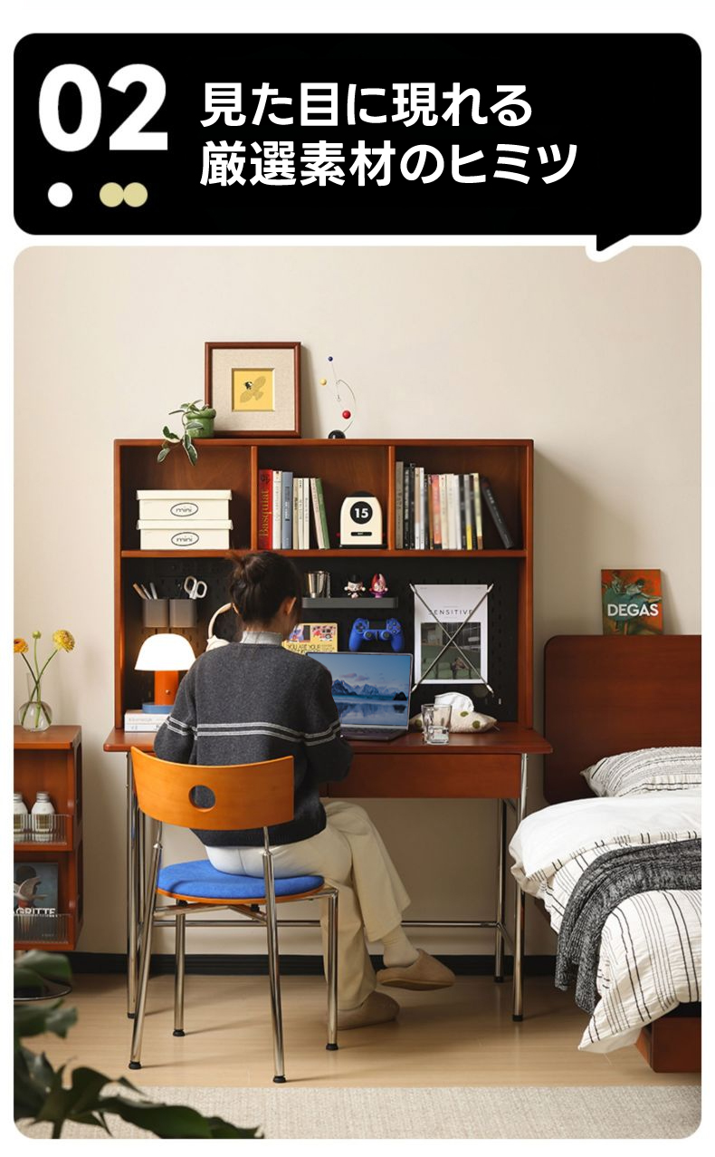 - 【多様な使用シーン】ヴィンテージ風のデザインが特徴で、寝室や書斎、ホームオフィスにぴったりです。一人暮らしや学生向けに設計されており、限られたスペースでも最大限に活用できるコンパクトなサイズが魅力です。