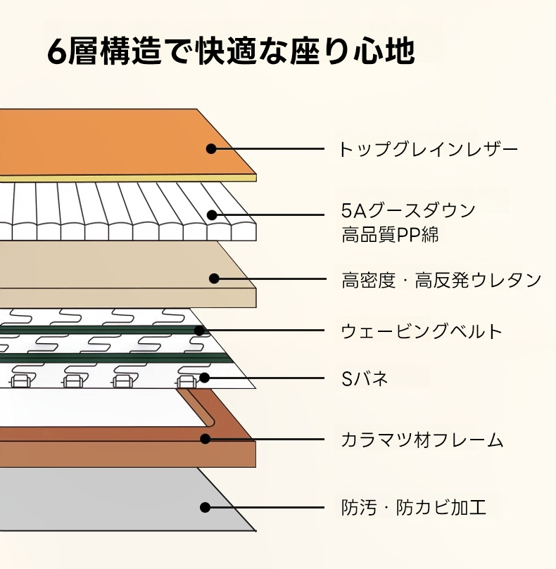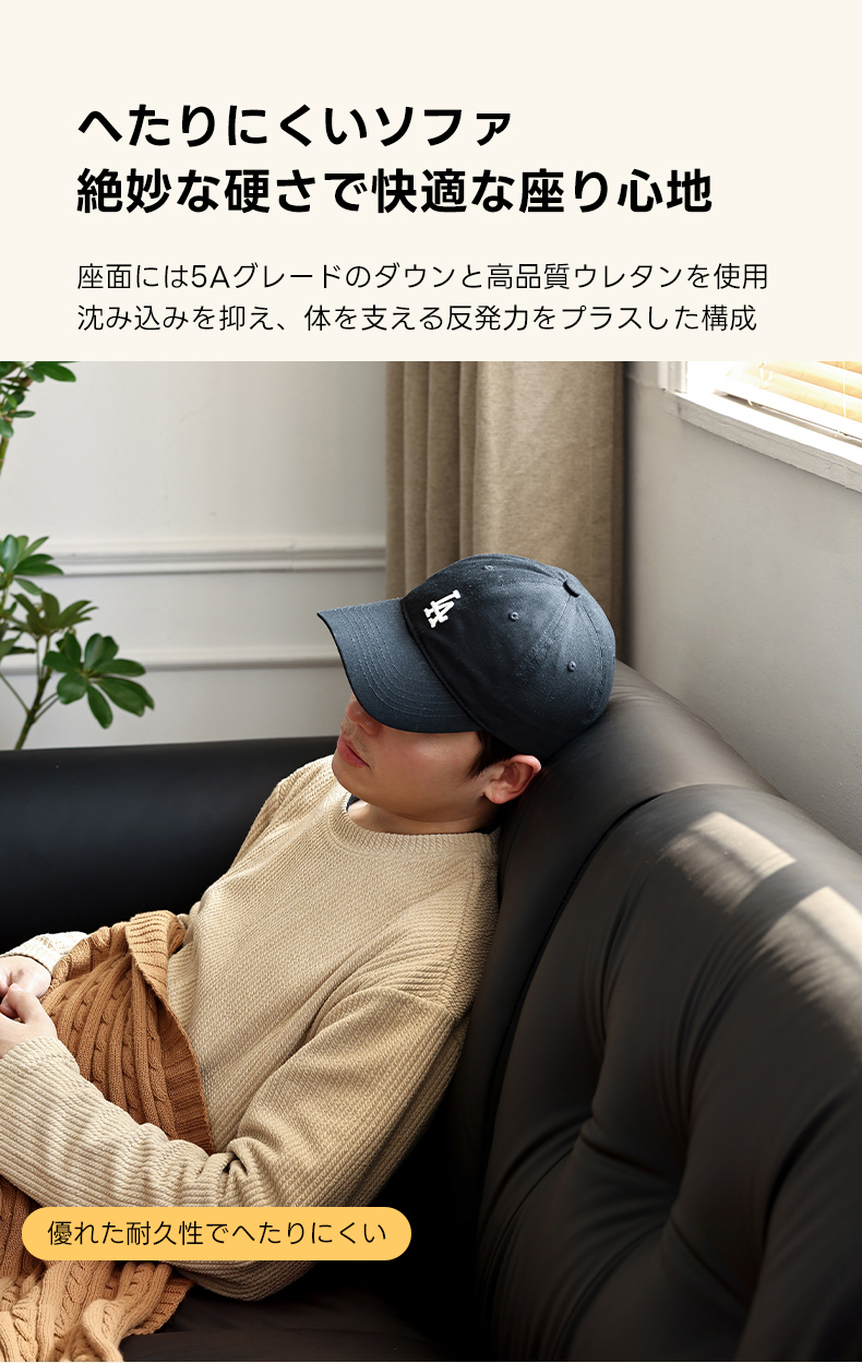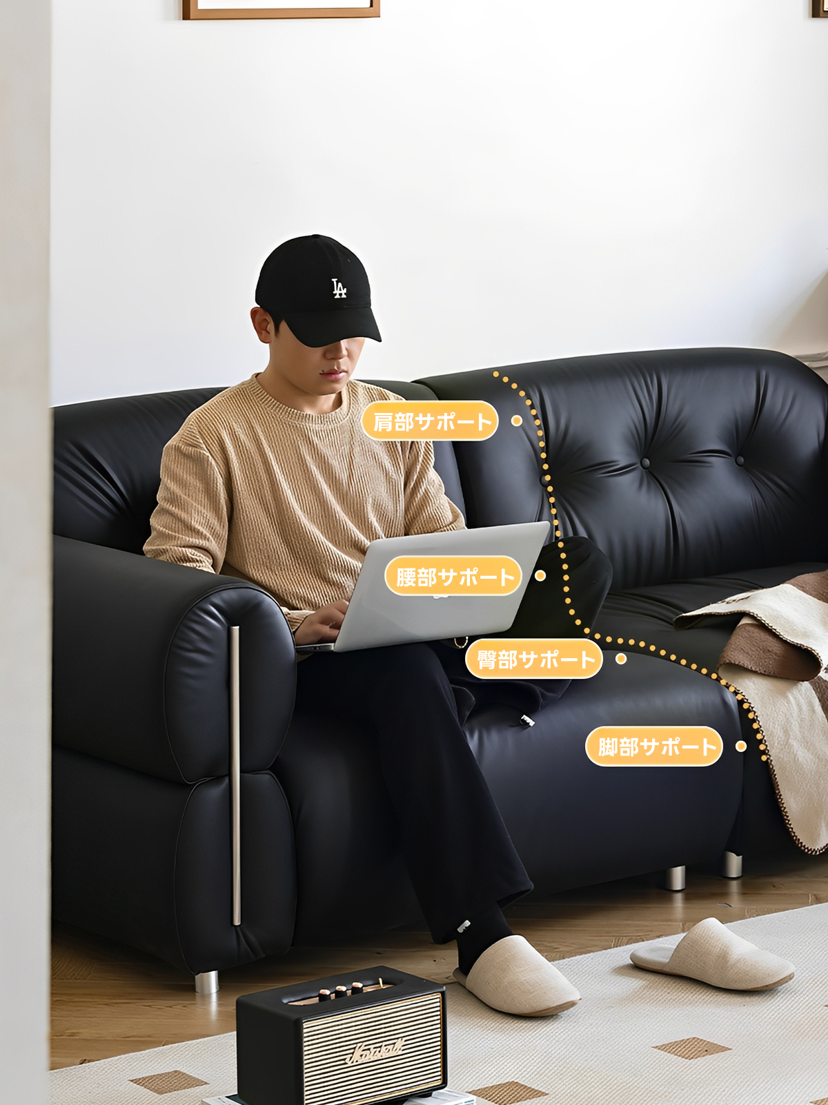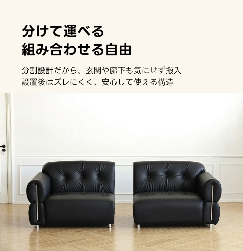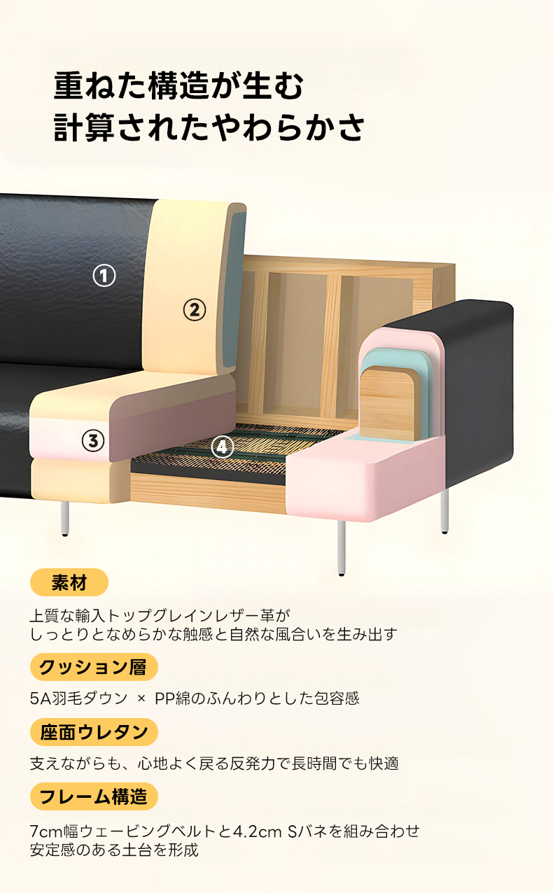 - 【高品質な素材と耐久性】:トップグレインレザーと合成皮革を使用し、耐久性としなやかな触り心地を実現しています。天然木フレームと高耐久Sバネにより、長く使える頑丈な構造を持っています。