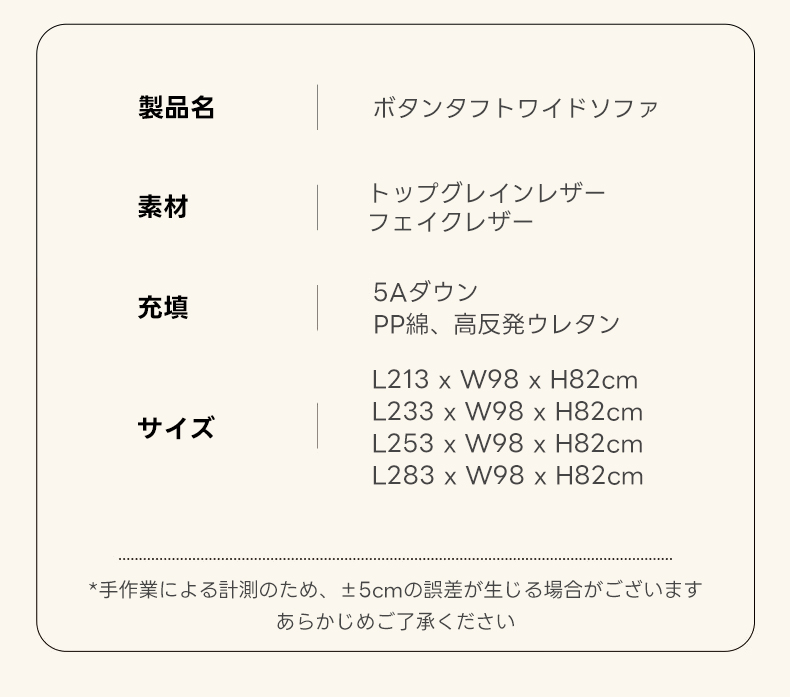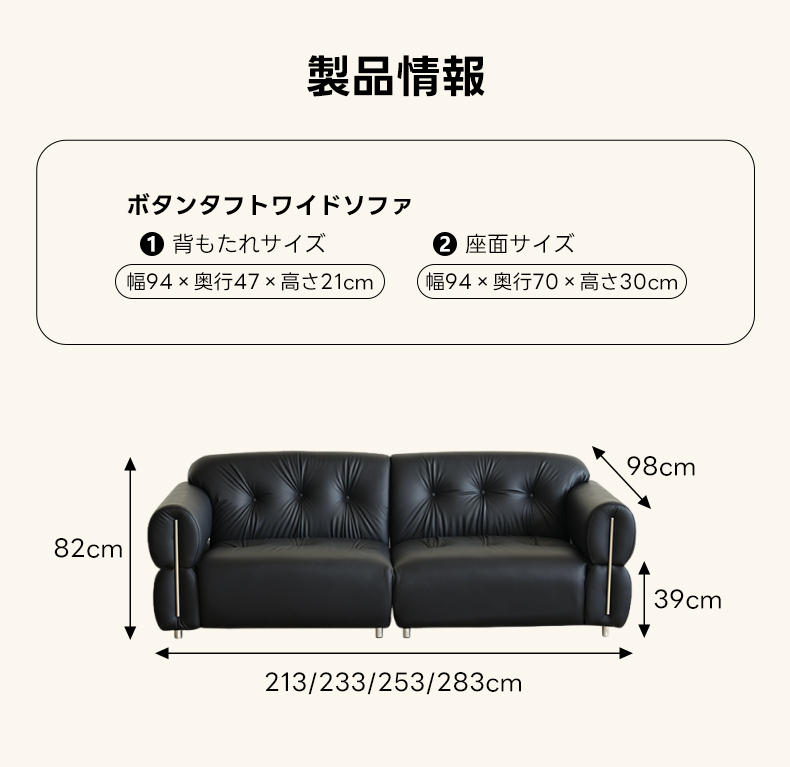 - 【快適な座り心地とデザイン性】:ボタンタフトワイドソファは、5Aグレードのダウンと高品質ウレタンを使用し、快適な座り心地を提供します。ヴィンテージ感漂うデザインで、どんなインテリアにも自然に溶け込みます。