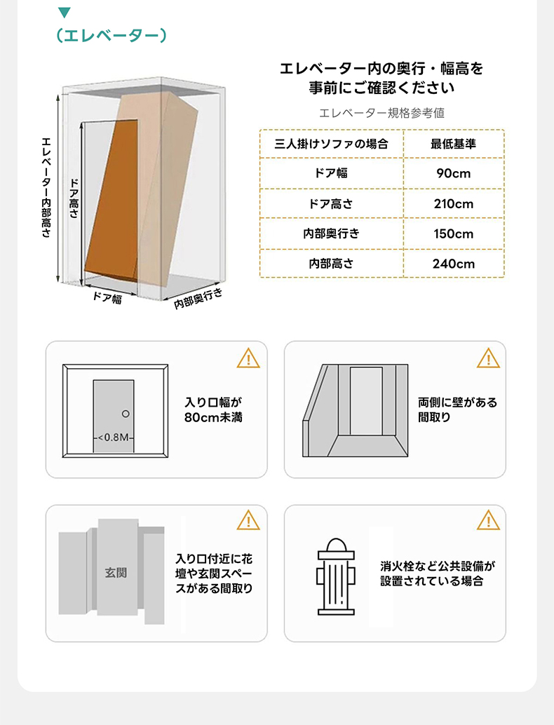※搬入不可等の理由による注文キャンセルは、ご返送にかかる費用をお客様にご請求いたします。ご注文前に大型家具の搬入方法をご確認ください。