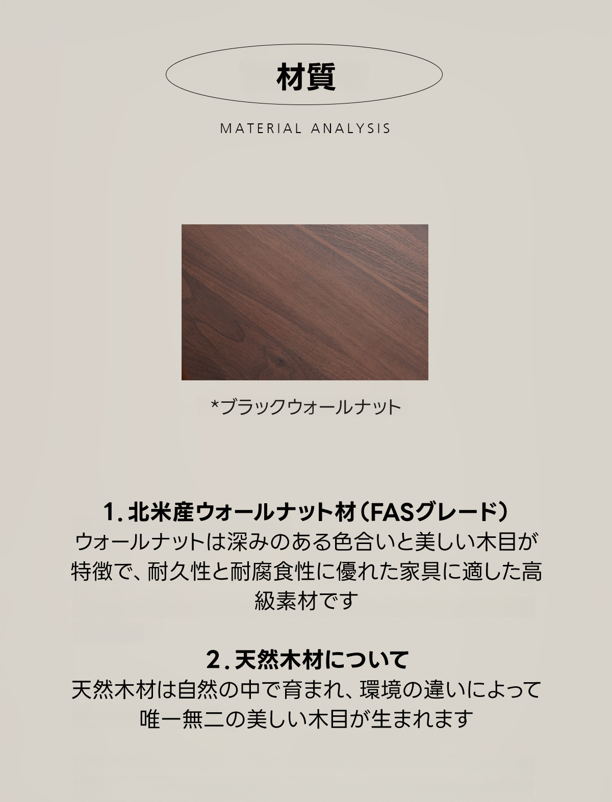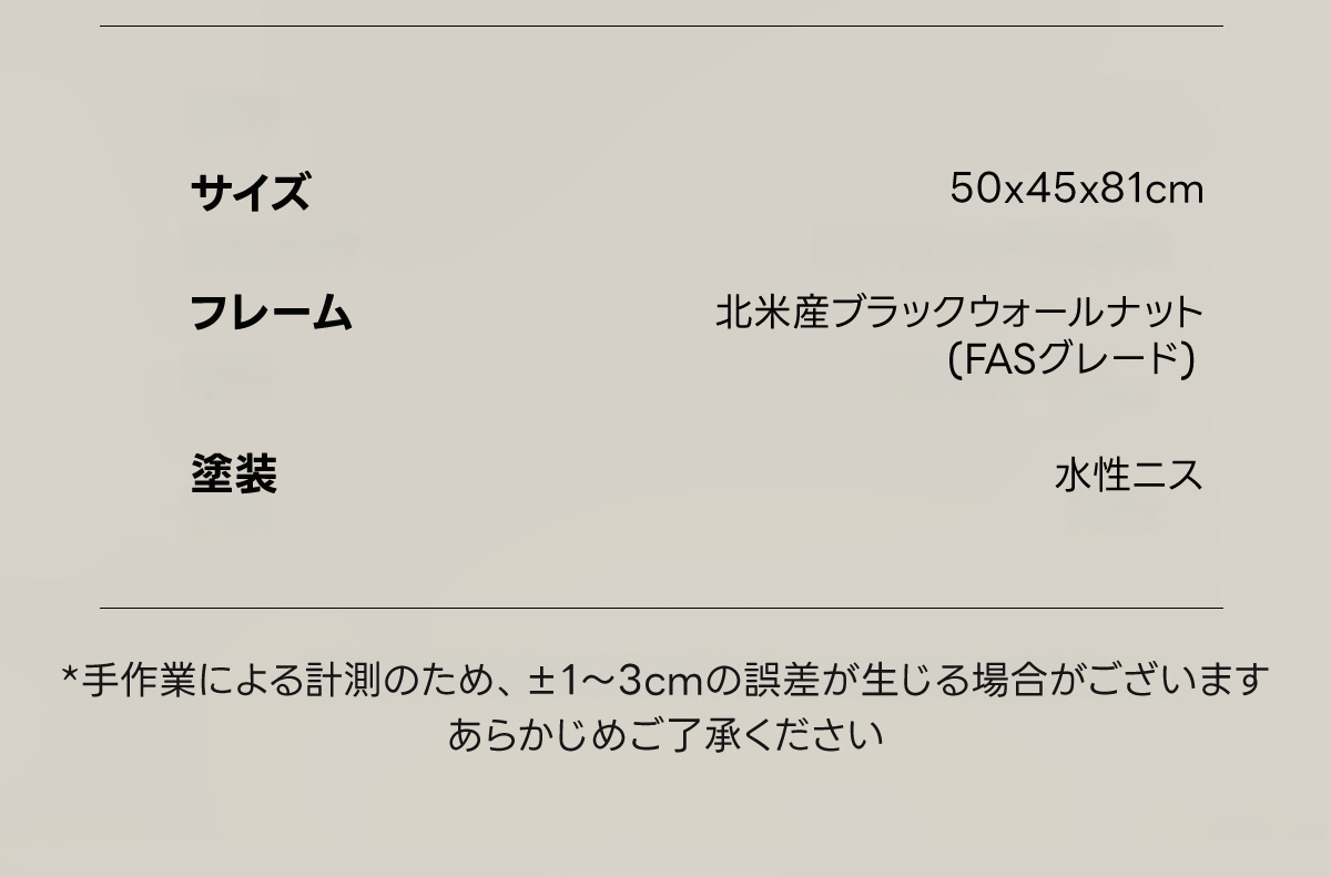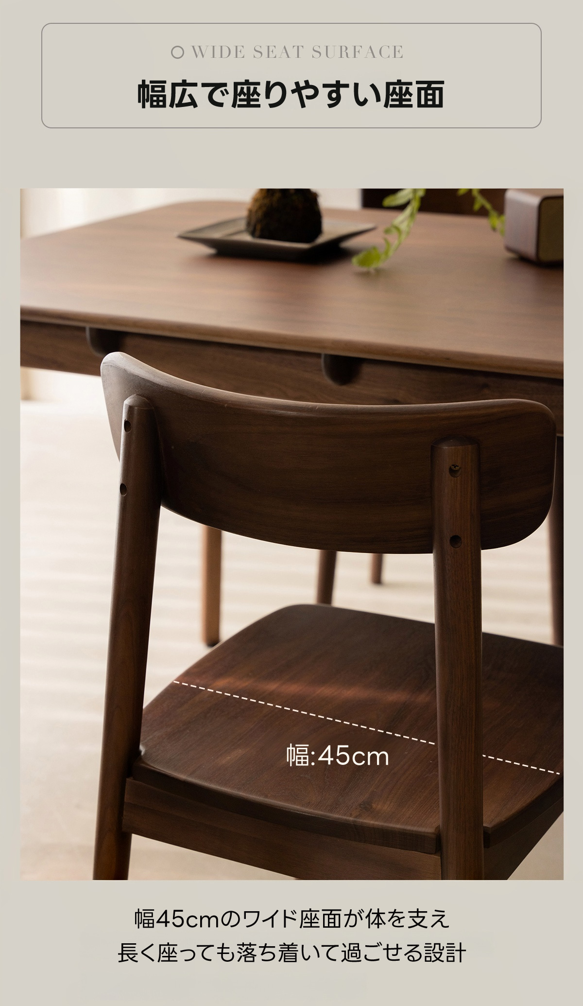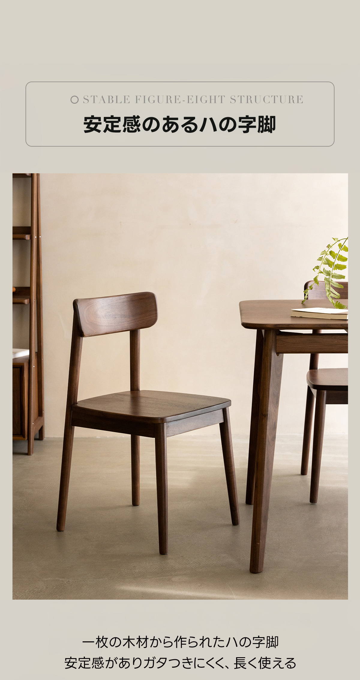 - 【耐久性と安定感】北米産ブラックウォールナット材を使用し、FASグレードの高品質な素材で作られたチェアは、耐久性と耐腐食性に優れています。安定感のあるハの字脚で、しっかりとした作りです。