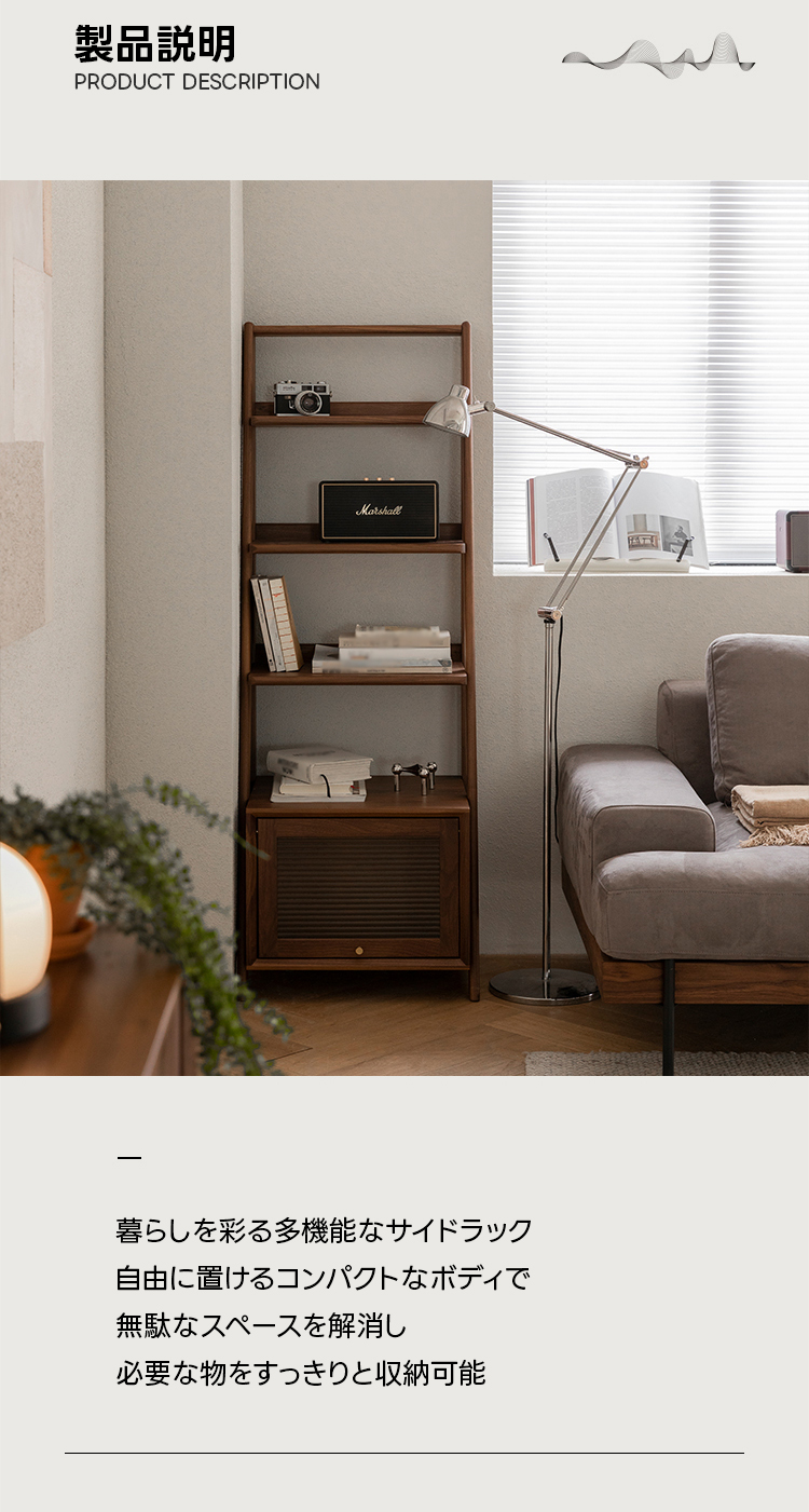 - 【多層収納で整理整頓が簡単】このサイドラックは5段の調整可能な収納棚を備え、書籍や小物、装飾品をすっきりと整理できます。多機能なデザインが特徴で、リビングや書斎、玄関、ダイニングなど様々な空間に対応します。