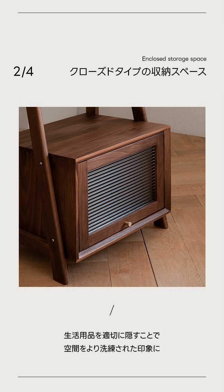 - 【クローズドタイプの収納スペース】下部にはクローズドタイプの収納スペースを設け、生活用品を適切に隠すことができます。これにより、空間をより洗練された印象に仕上げます。