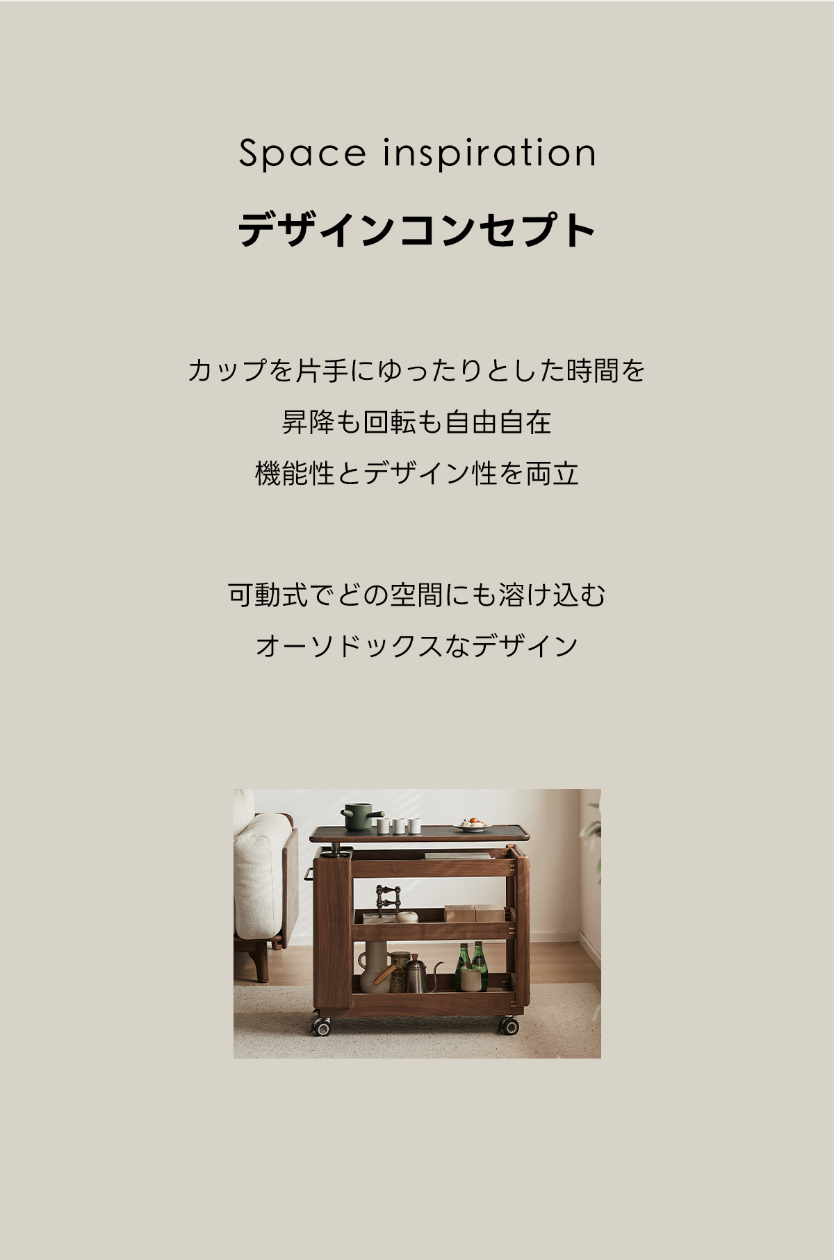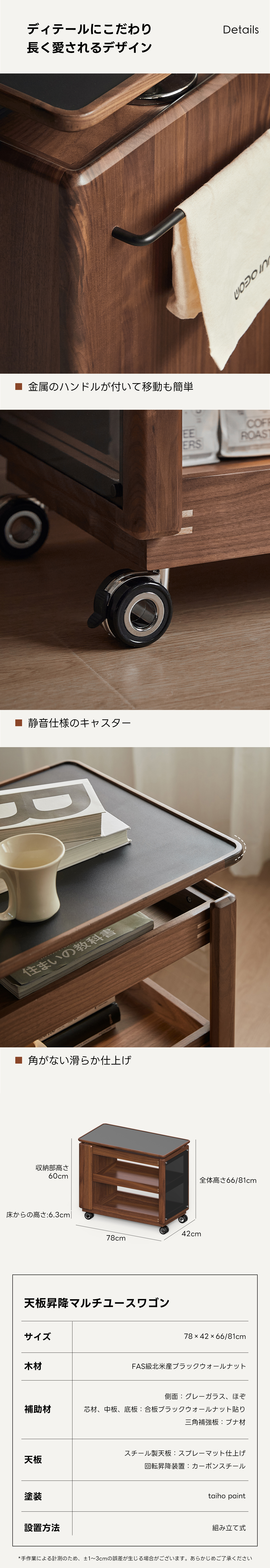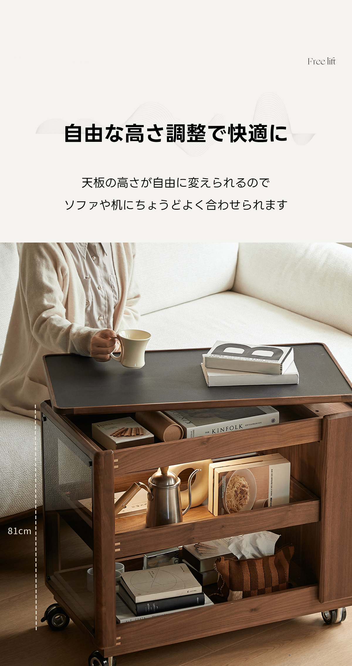 Woody Prime Walnut ウォールナット材 天板昇降マルチユースワゴン