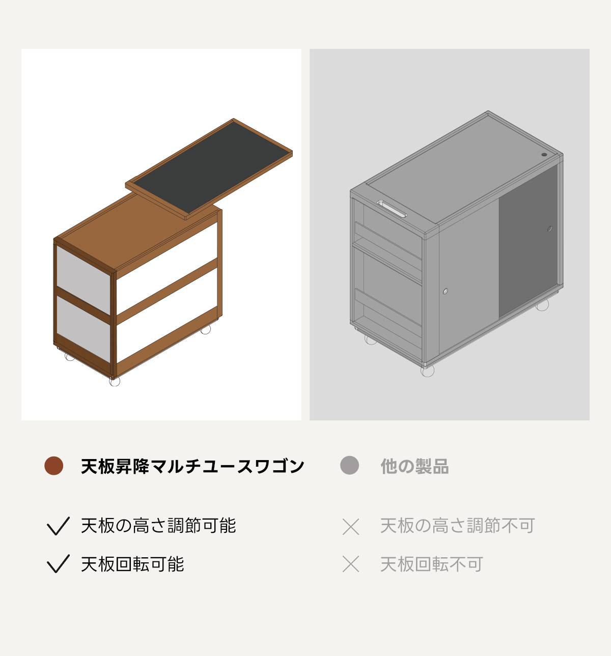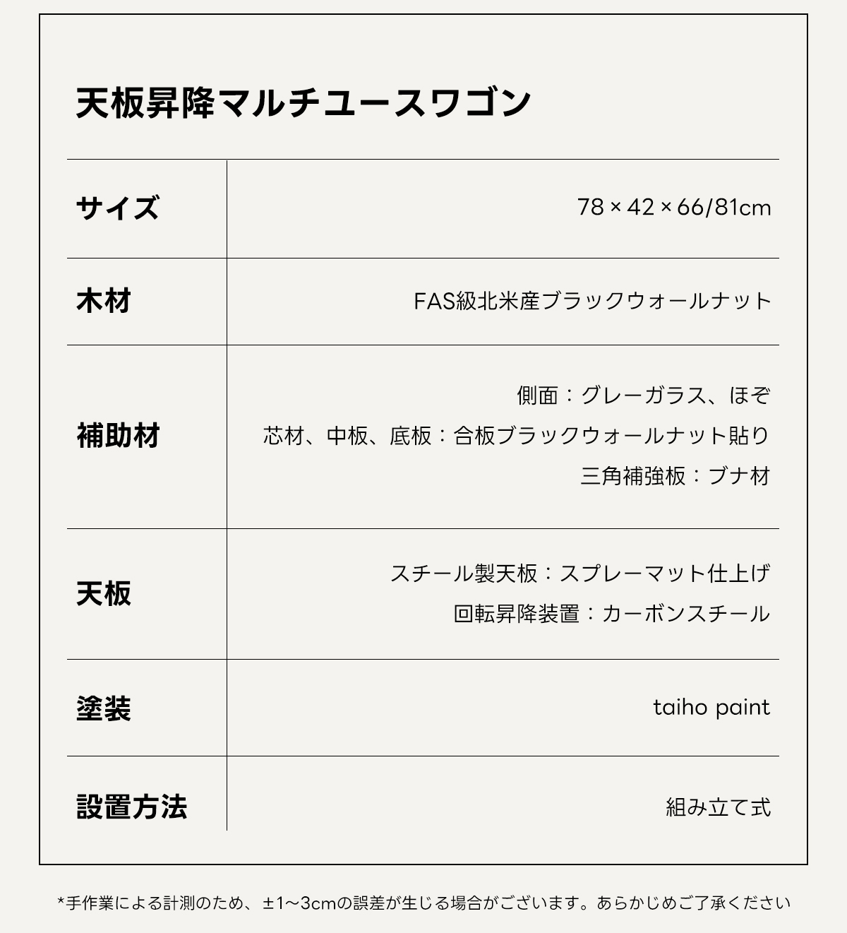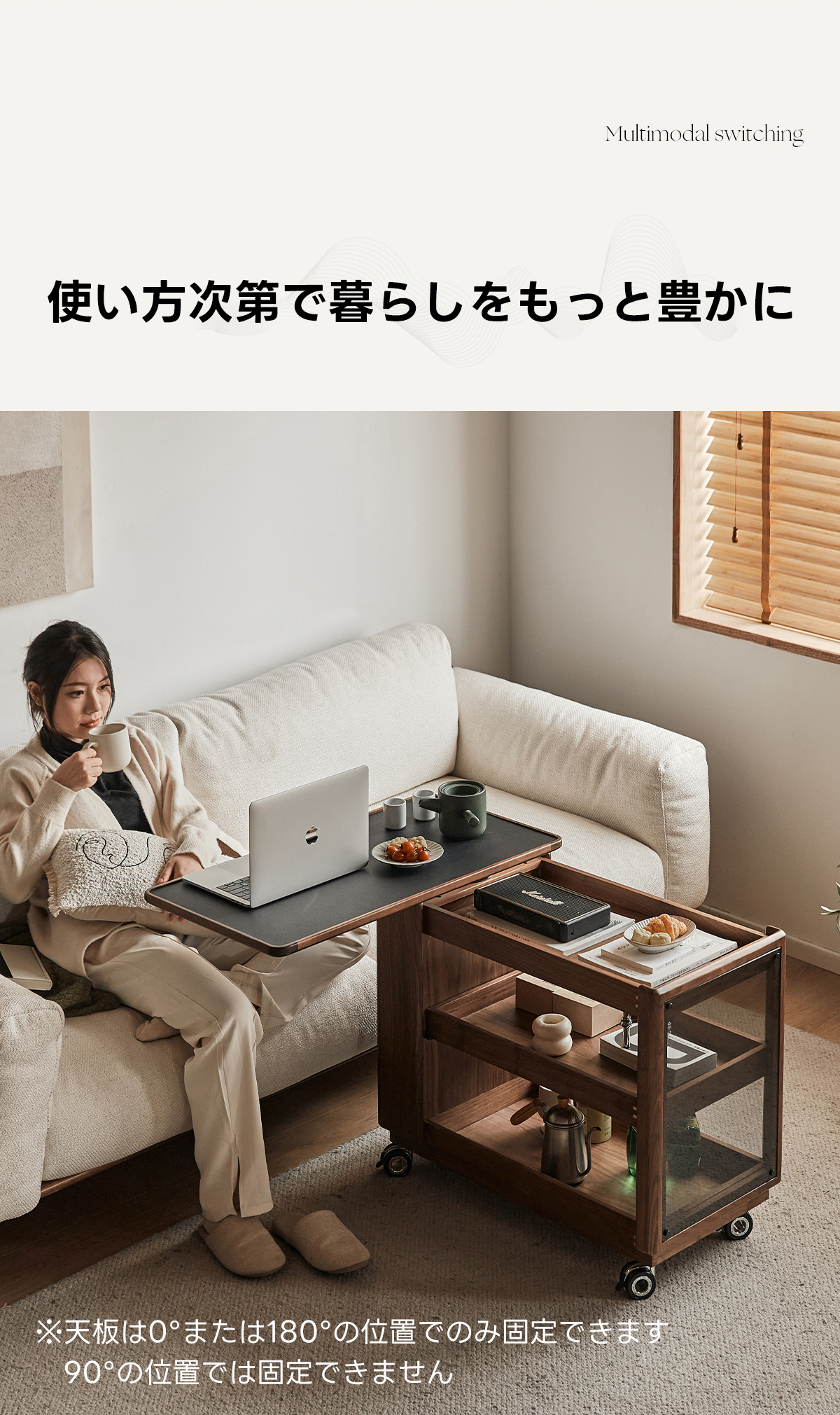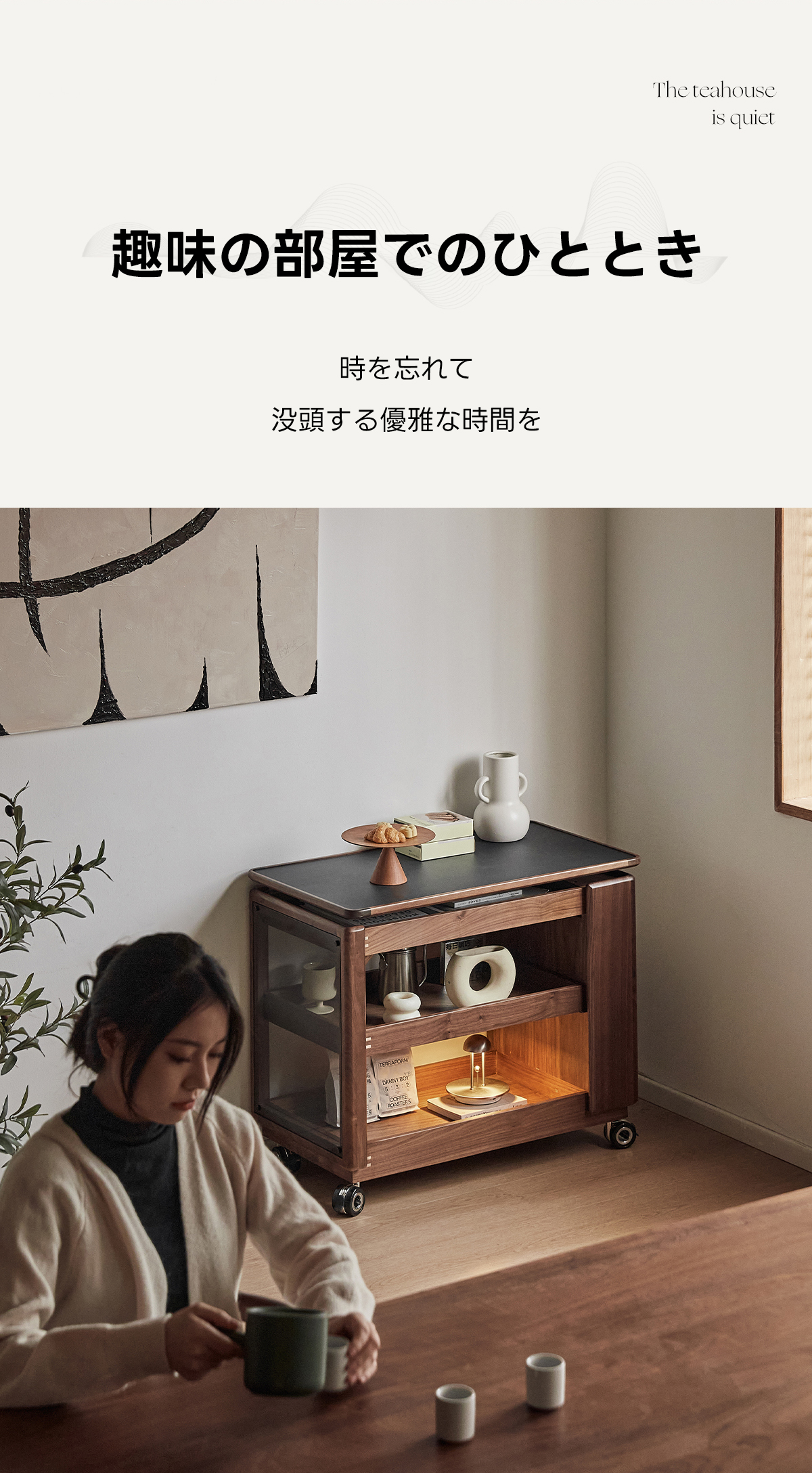 Woody Prime Walnut ウォールナット材 天板昇降マルチユースワゴン
