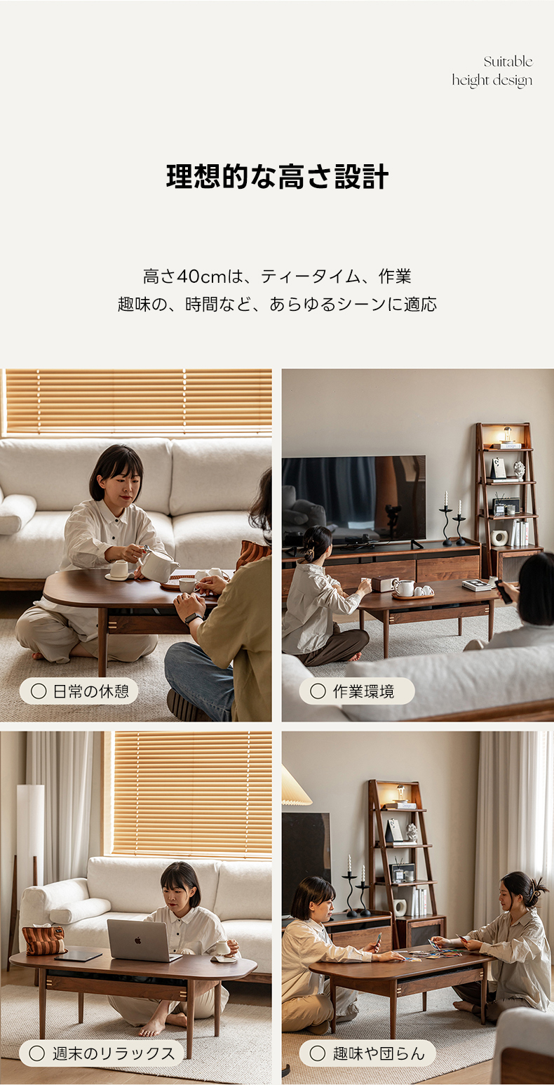 - 【多様なインテリアスタイルにマッチ】:オーバル型のデザインとナチュラルな色合いは、和室や洋室を問わず、様々なインテリアスタイルにマッチします。カップルやファミリー、一人暮らしの方にも最適で、リビングをより魅力的に演出します。