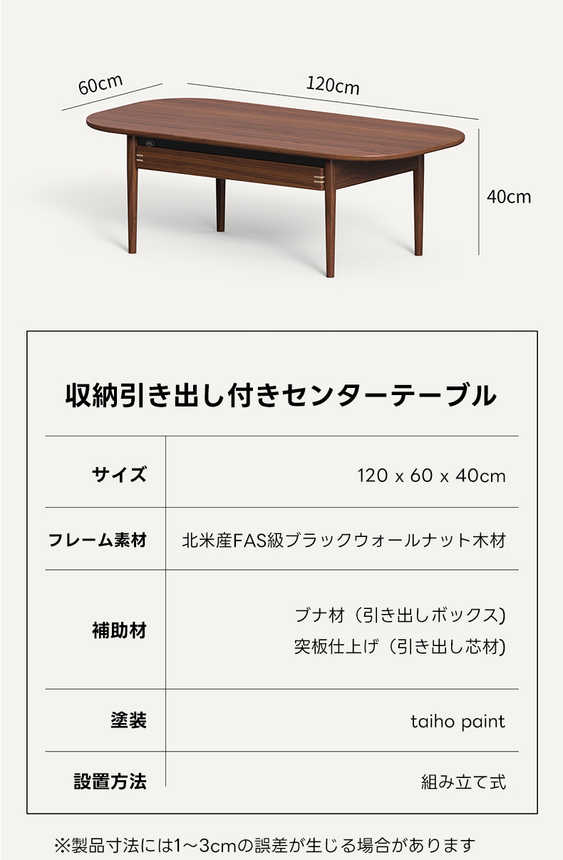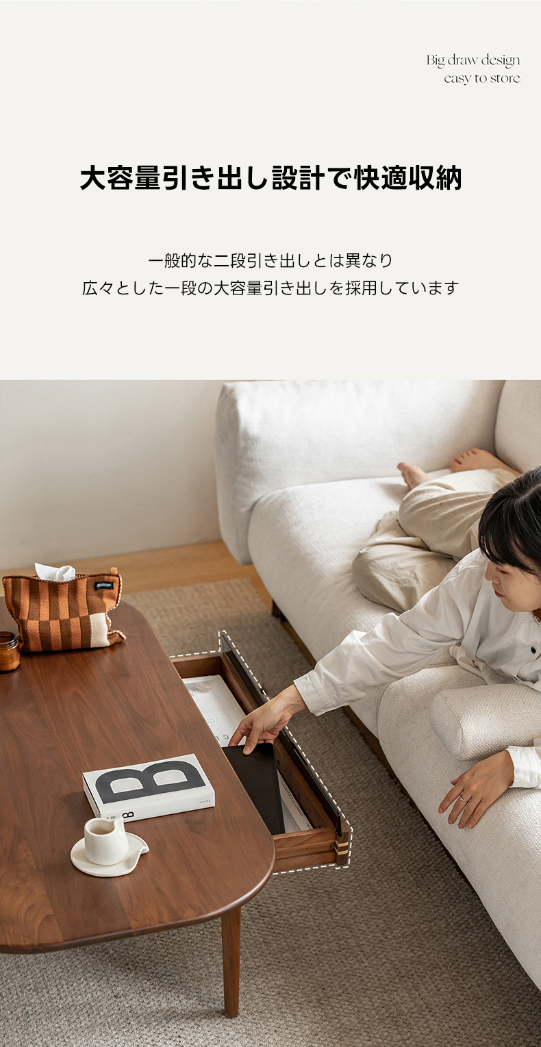 Woody Prime Walnut ウォールナット材 収納引き出し付きセンターテーブル