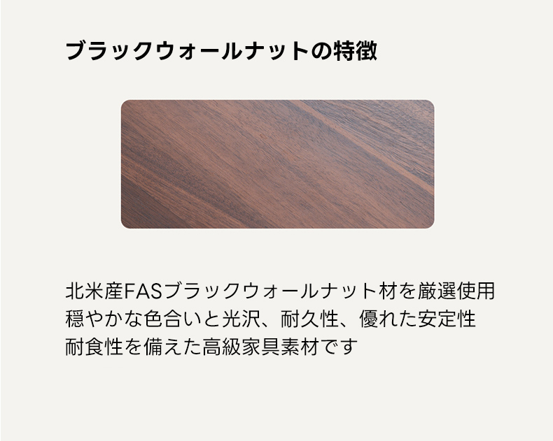 - 【高品質なウォールナット材】:北米産のFAS級ブラックウォールナット材を使用し、高級感と耐久性を兼ね備えています。美しい色合いと光沢が特徴で、選び抜かれた素材により色ムラや節が少なく、長く愛用いただけます。