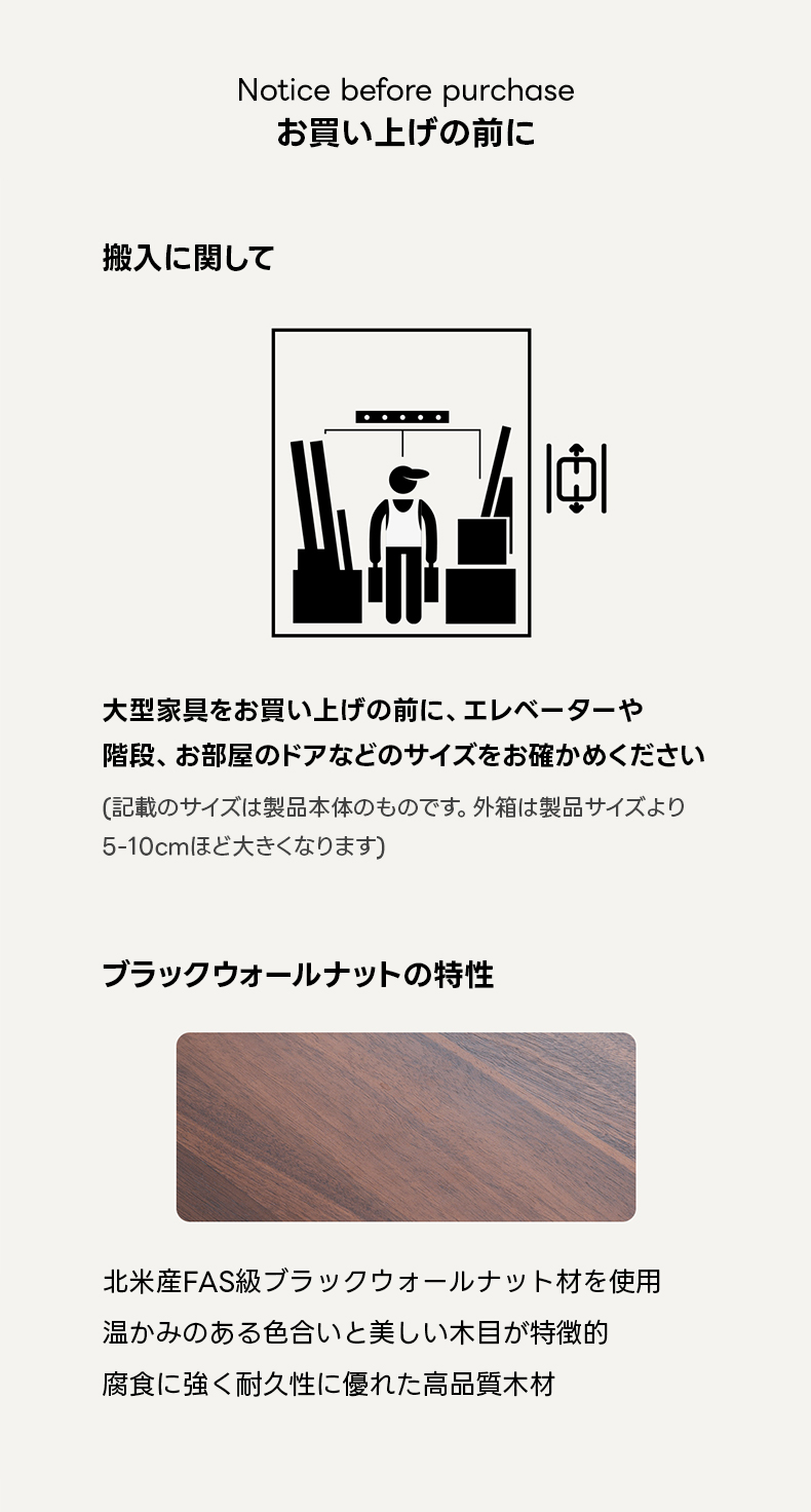 ※搬入不可等の理由による注文キャンセルは、ご返送にかかる費用をお客様にご請求いたします。ご注文前に大型家具の搬入方法をご確認ください。