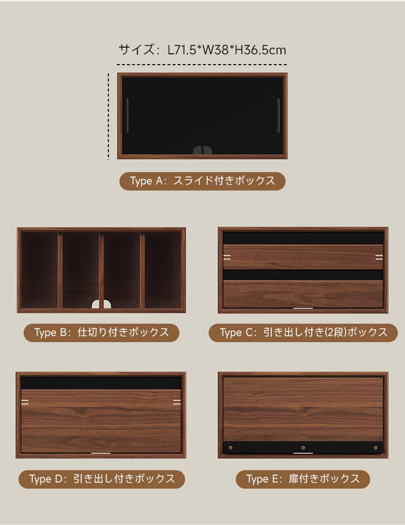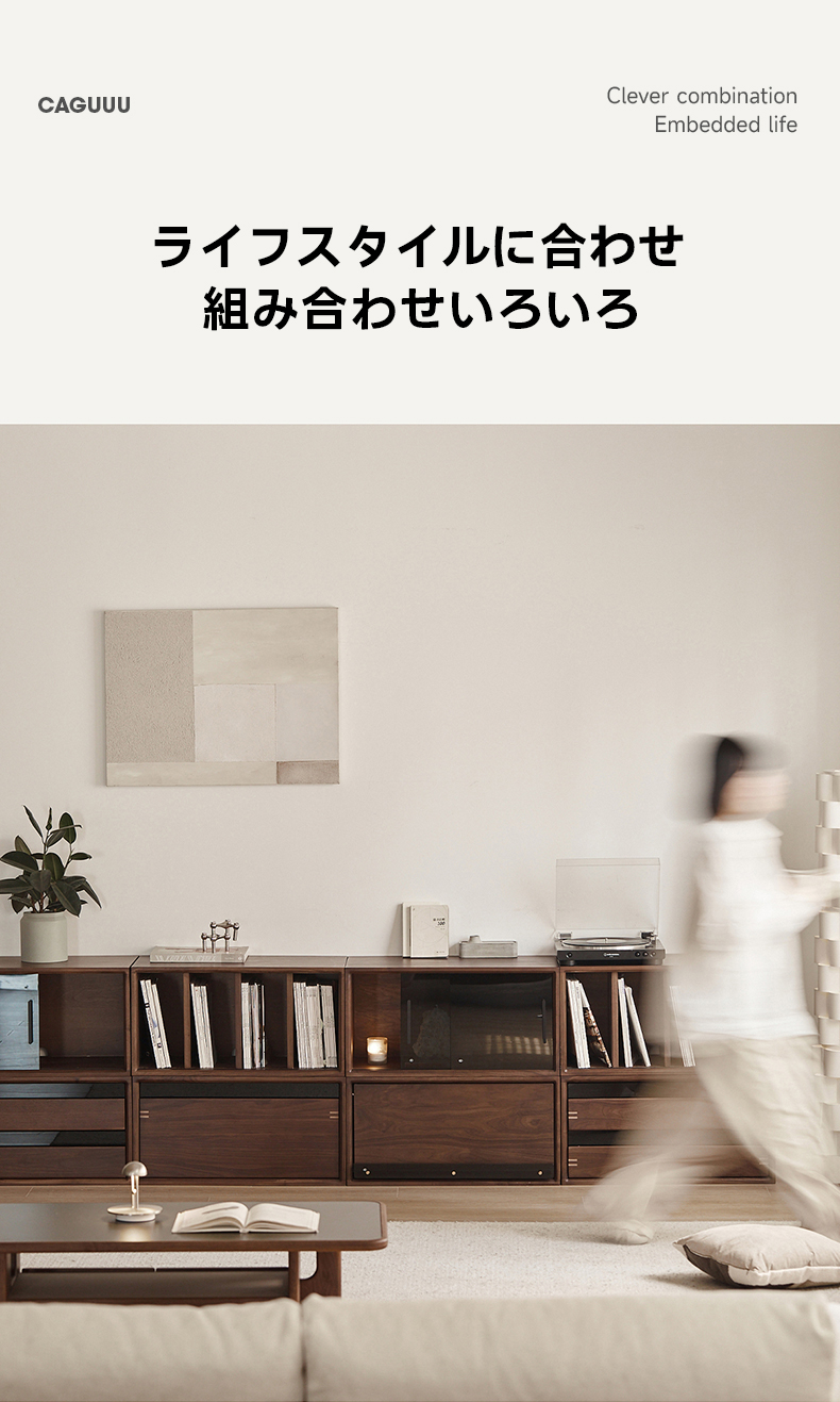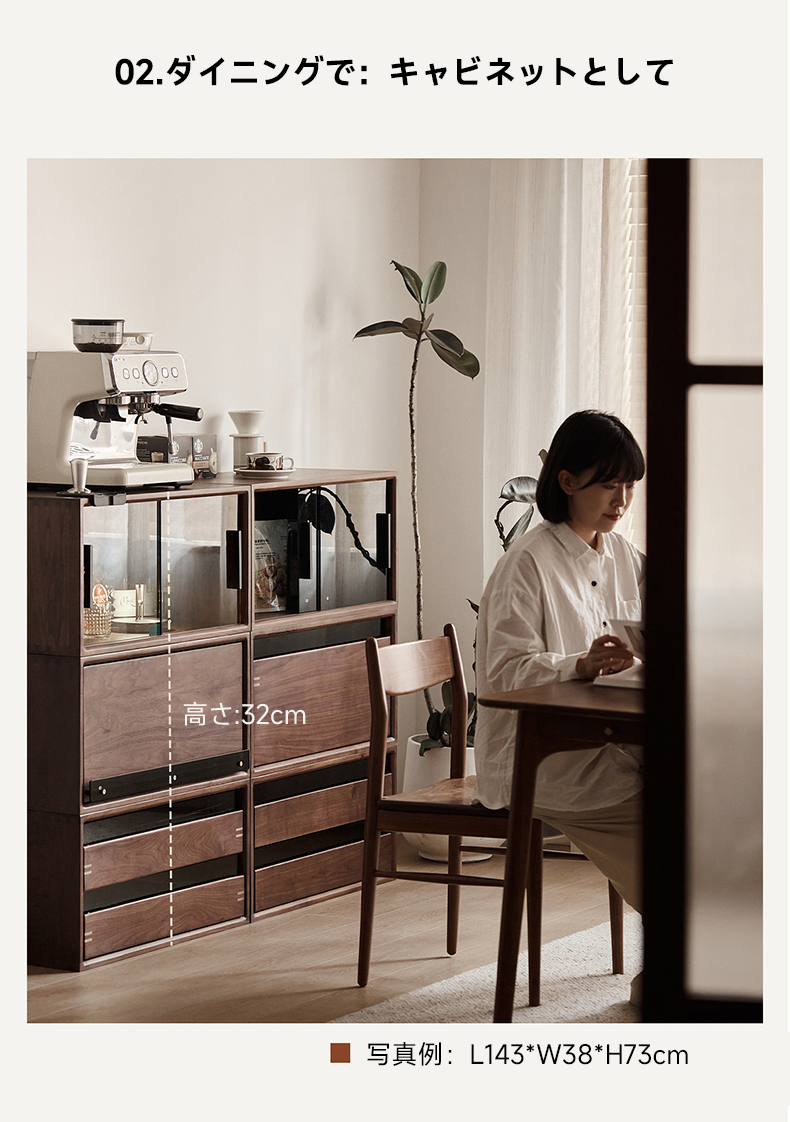 Woody Prime Walnut ウォールナット材 天然木組み合わせキャビネット