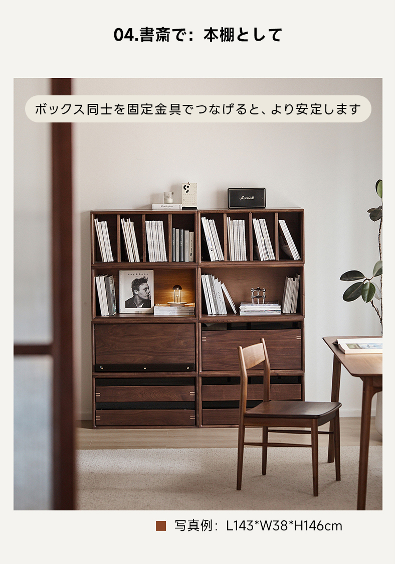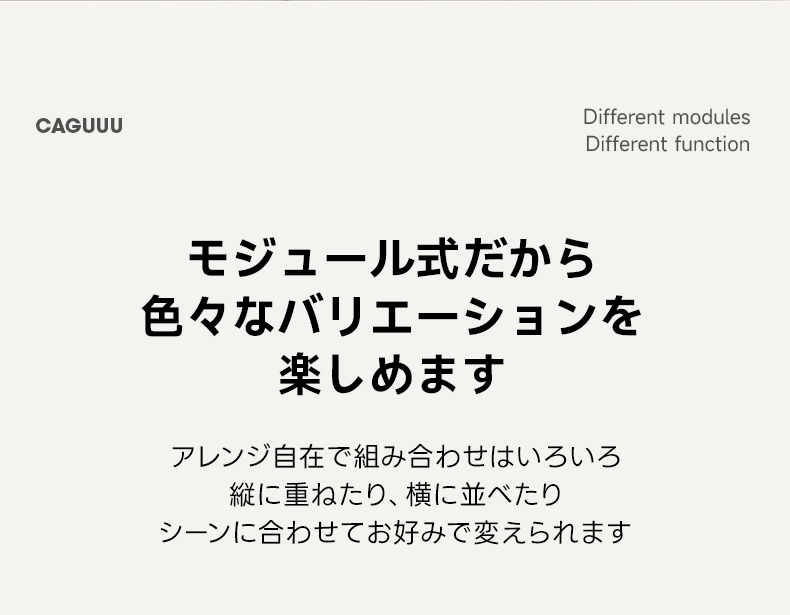 - 【モジュール式デザインの自由度】このキャビネットは、モジュール式デザインを採用しており、縦に重ねたり横に並べたりすることで、スペースに応じて自由にカスタマイズ可能です。スライド付きボックスや引き出し付きボックスなど、用途に応じた組み合わせが可能で、収納力を最大限に活用できます。