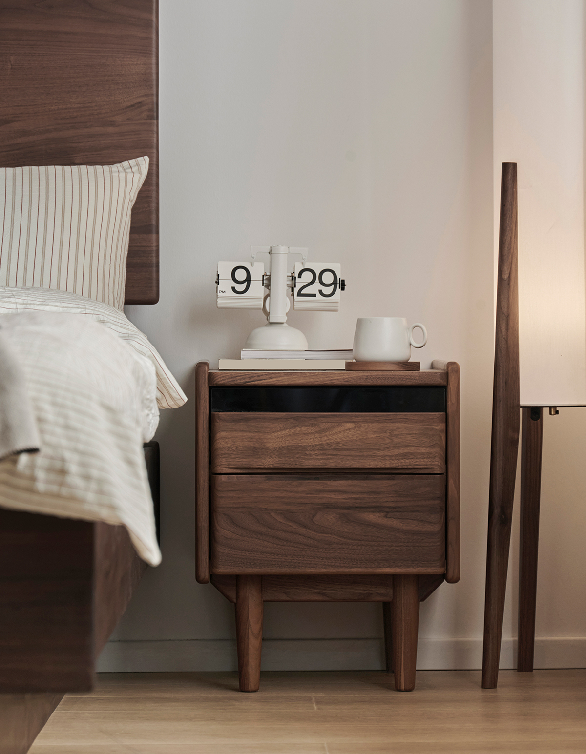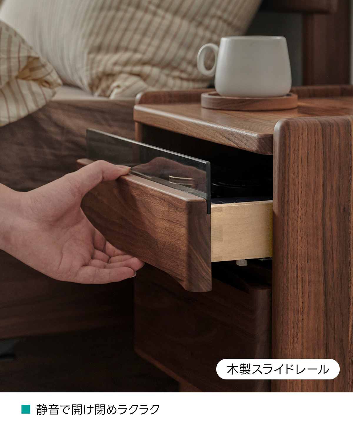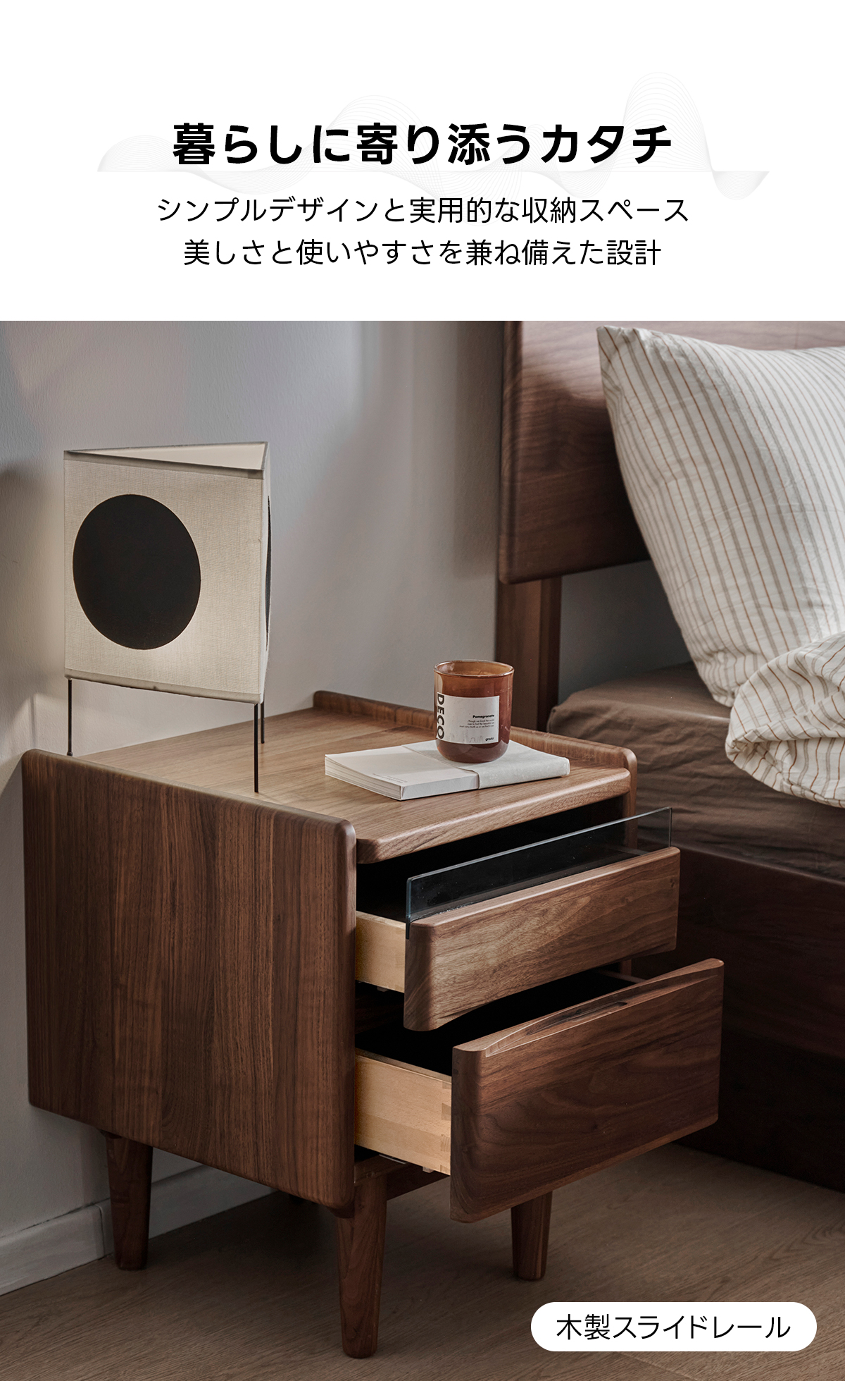 Woody Prime Walnut ウォールナット材 北欧風天然木ベッドサイドテーブル