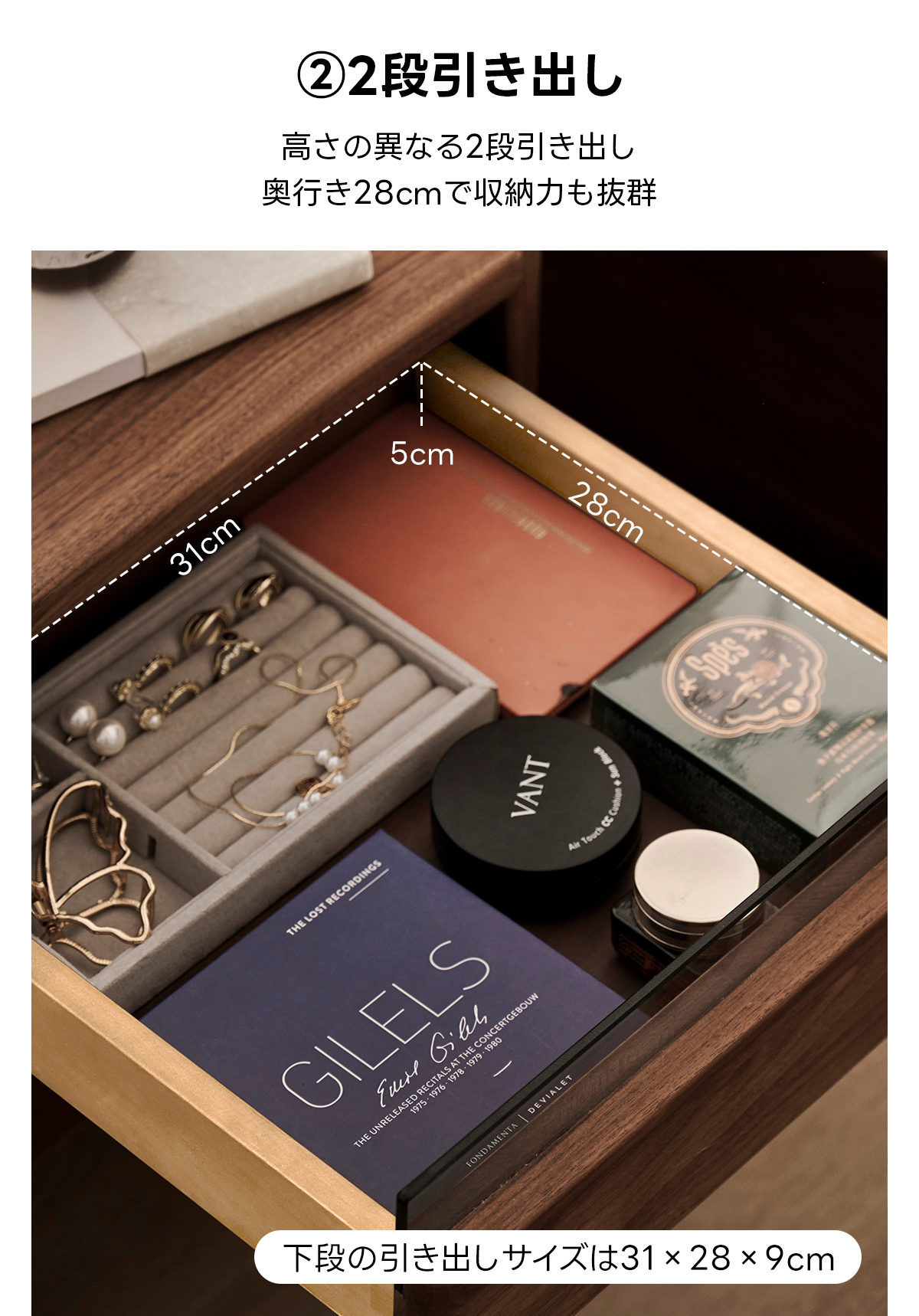 - 【高品質素材とデザイン】北米産FASグレードのブラックウォールナットを使用し、耐久性が高く美しい木目を楽しめます。引き出しにはブナ材を使用し、EOグレード合板を芯材に採用しています。環境にも配慮し、FSCとAHEC認証を取得しています。