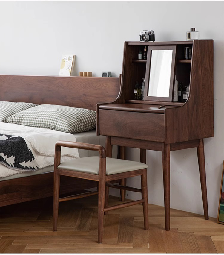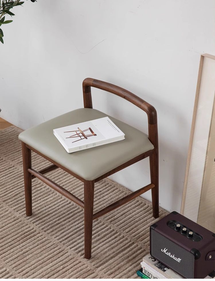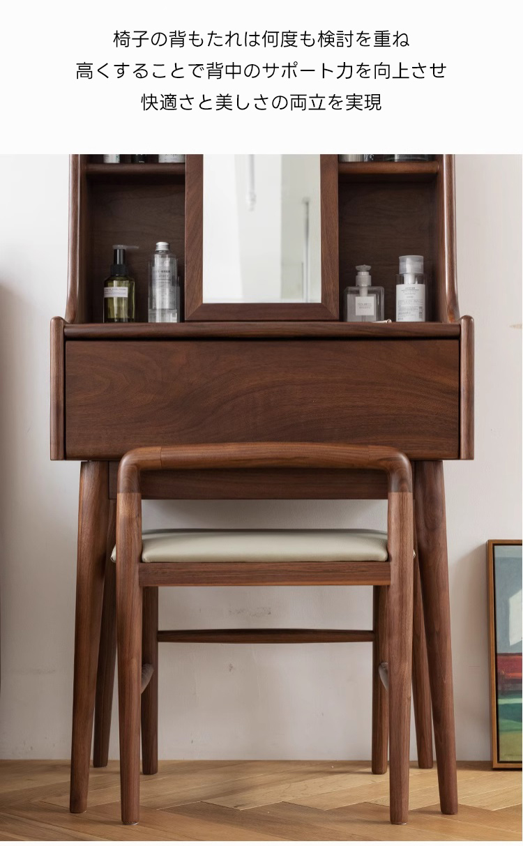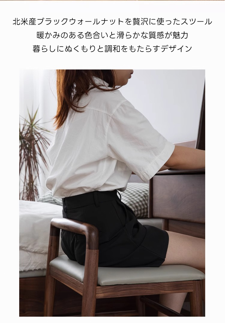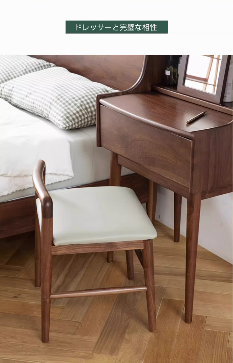 - 【高級感あふれる素材とデザイン】このドレッサースツールは、北米産ブラックウォールナット材を使用し、FAS級の高品質素材で作られています。耐久性と美しさを兼ね備えた素材が、どんなインテリアにも高級感をプラスします。