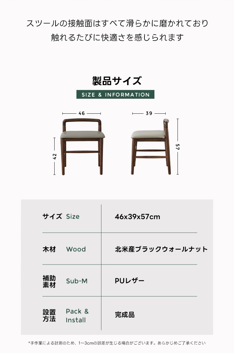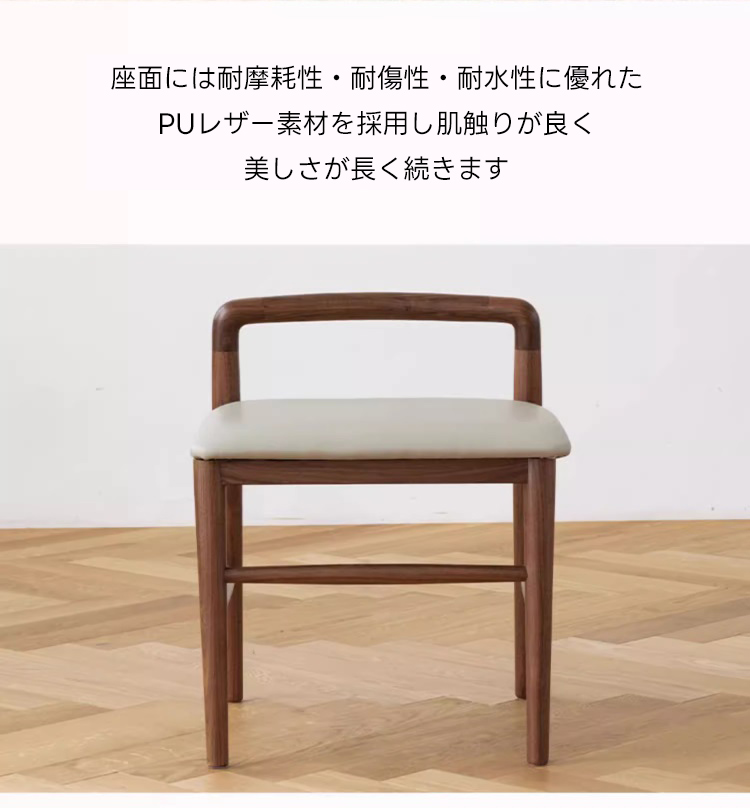 - 【快適な座り心地と省スペース設計】座面には耐摩耗性、耐傷性、耐水性に優れたPUレザーを採用し、長時間座っても快適です。また、ドレッサーの下にぴったり収まる省スペース設計で、限られたスペースを有効活用できます。
