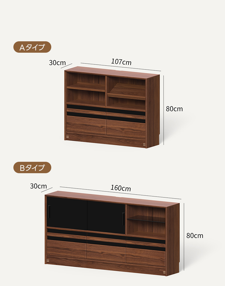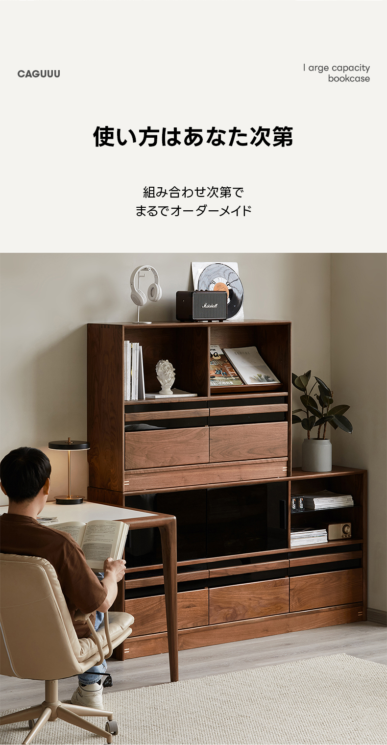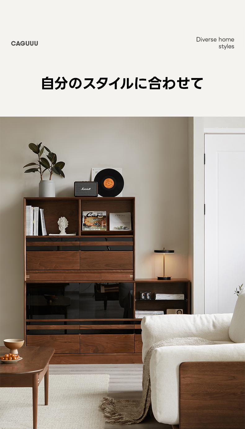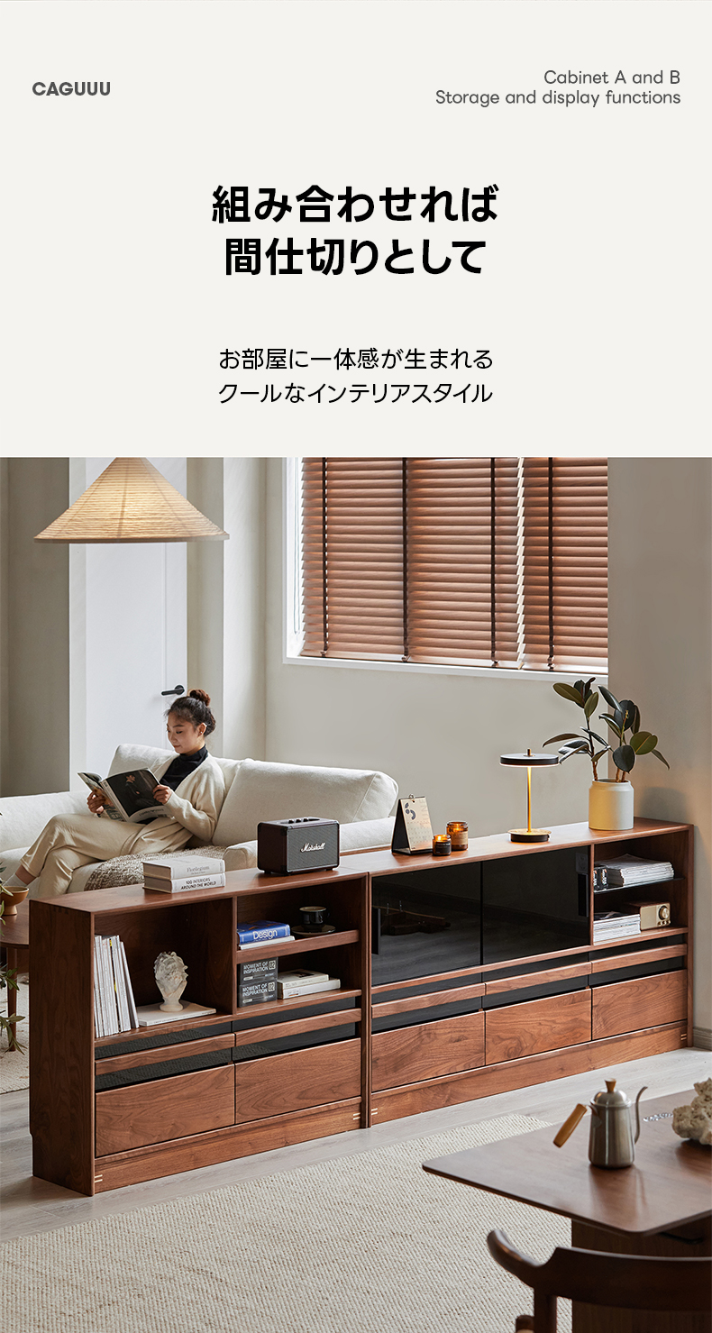 Woody Prime Walnut ウォールナット材 大容量組み合わせサイドボード