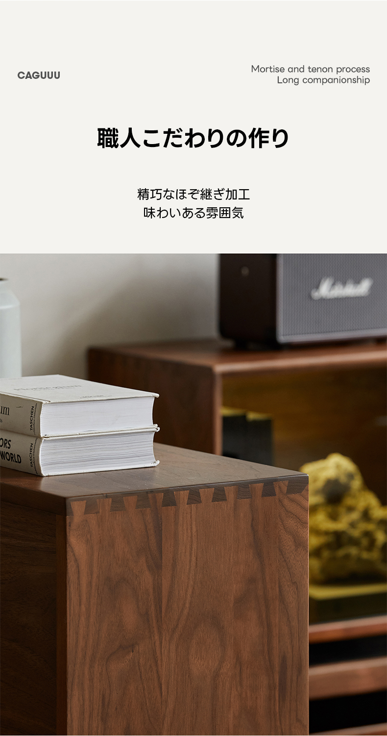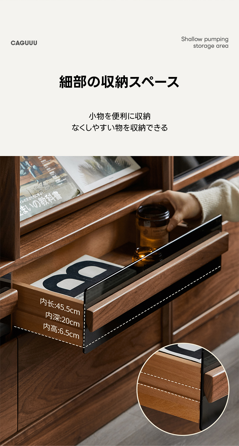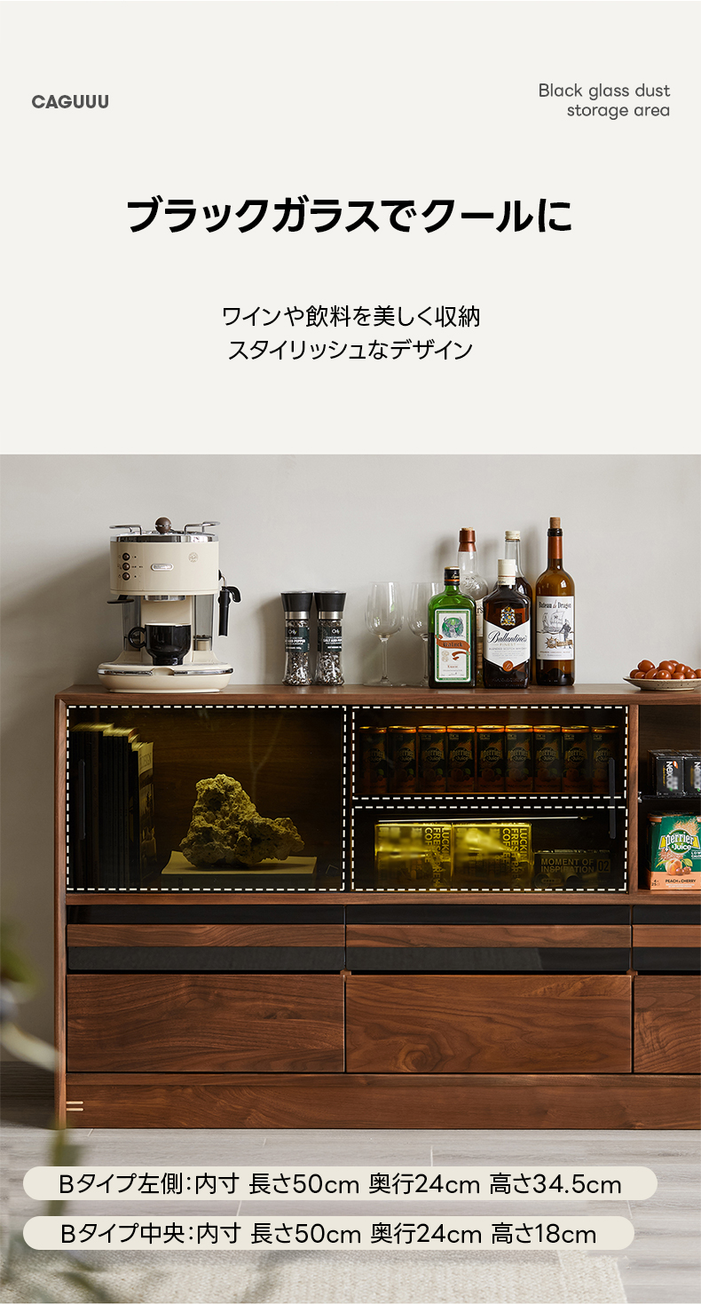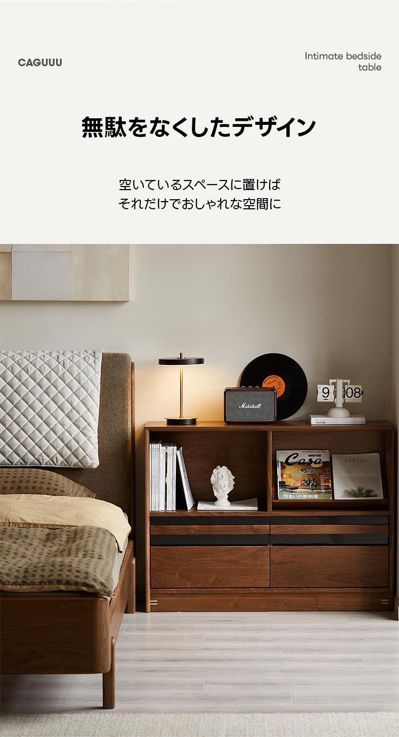 - 【自由な組み合わせと大容量収納】ウォールナット材サイドボードは、2種類のサイズから選べ、シーンに応じて自由に組み合わせが可能です。大容量の引き出しとオープンラックで、リビングやダイニングのアイテムを美しく整理整頓できます。