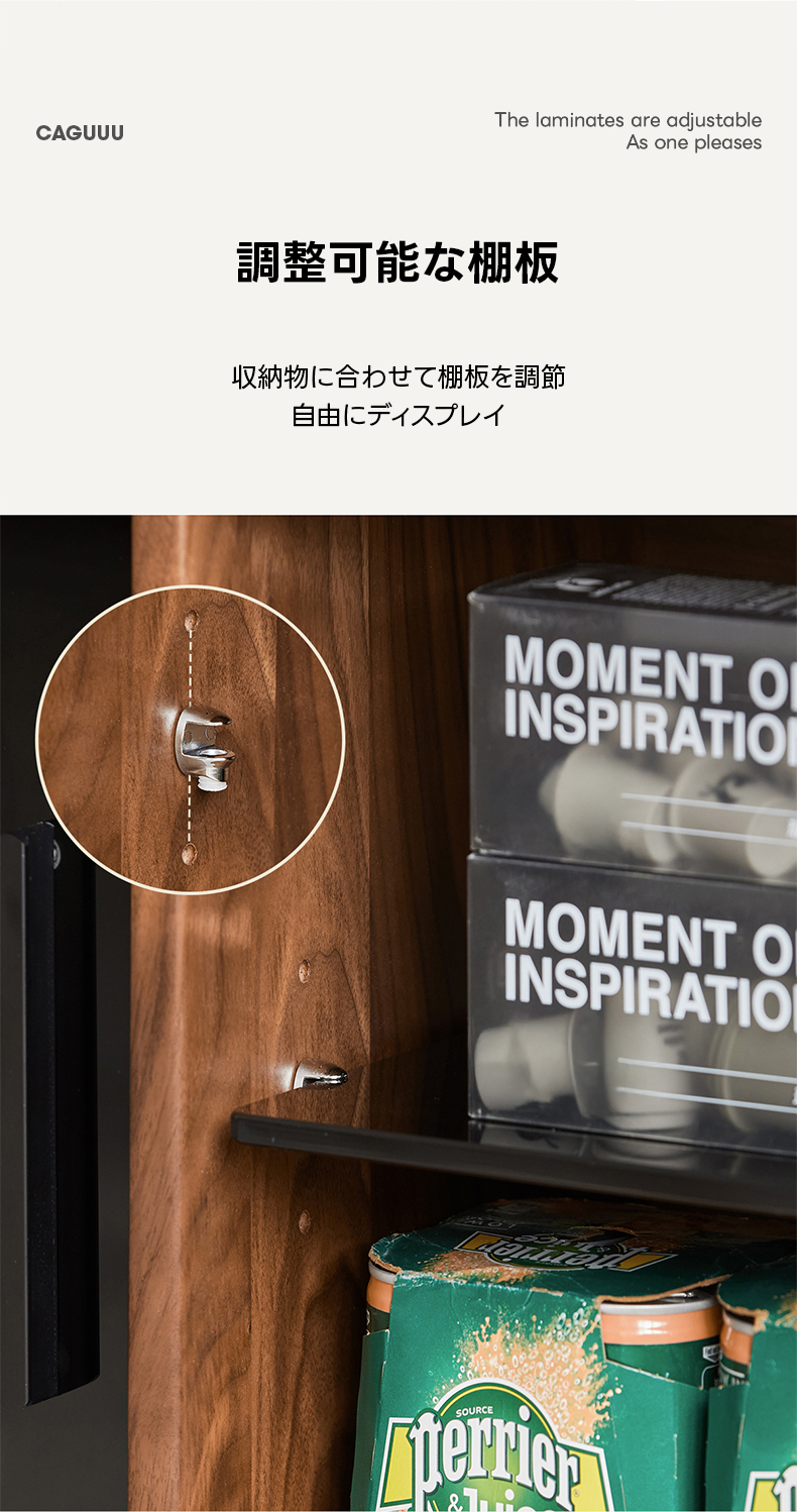 - 【調整可能な棚板で自由な収納】棚板は調整可能で、収納物に合わせて自由に配置できます。ナチュラルなベージュの色合いとウォールナットの質感が、どんなインテリアにも調和し、上品な雰囲気を演出します。