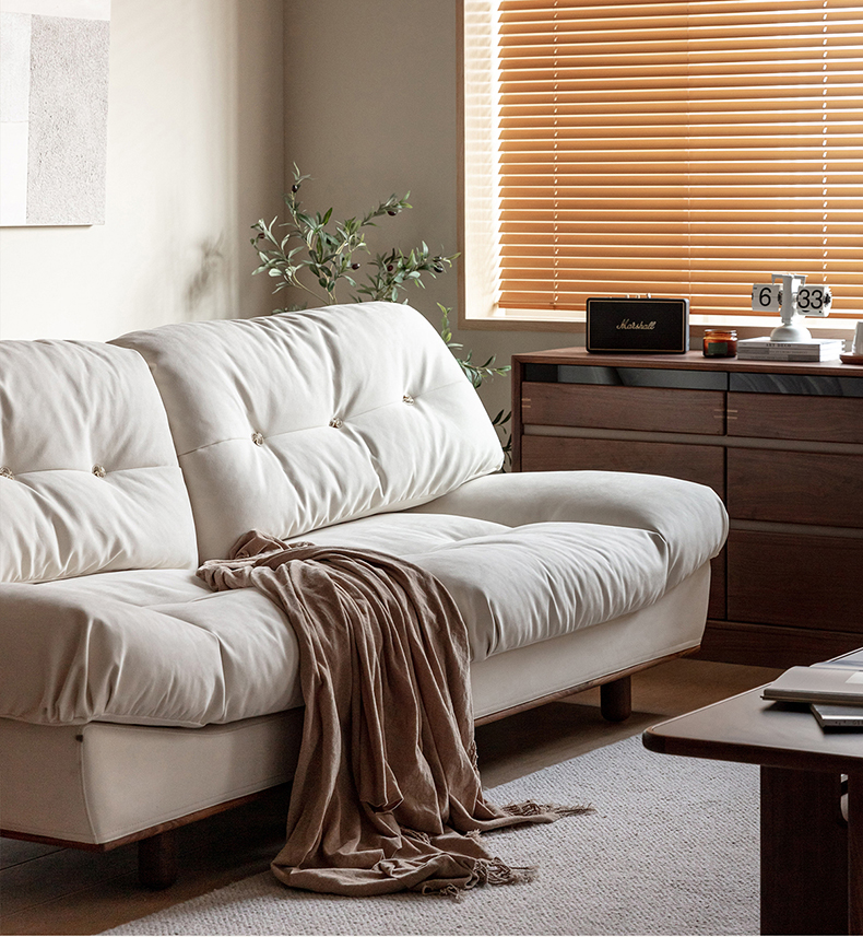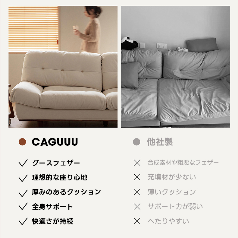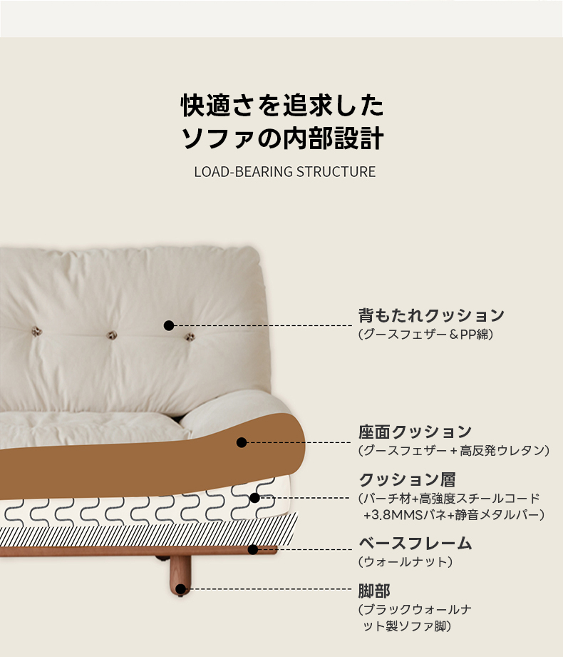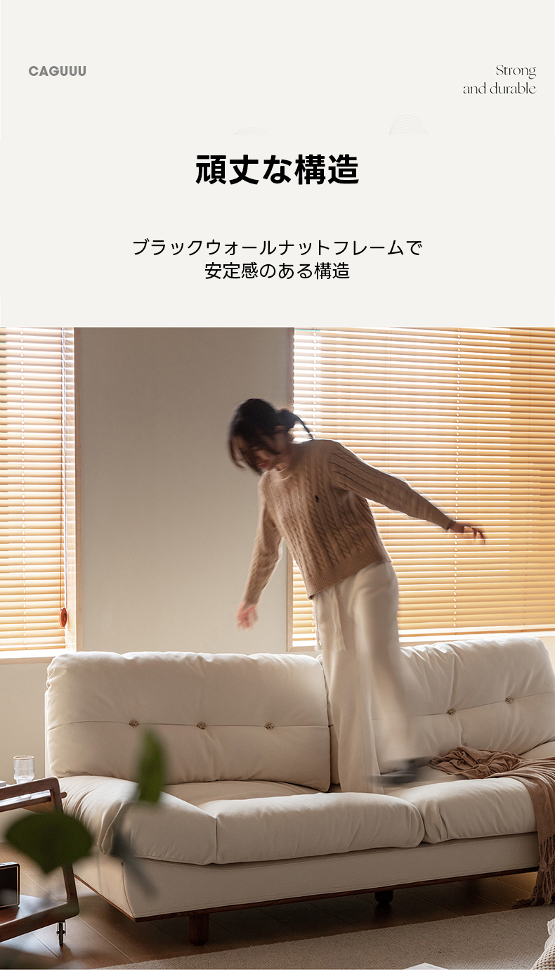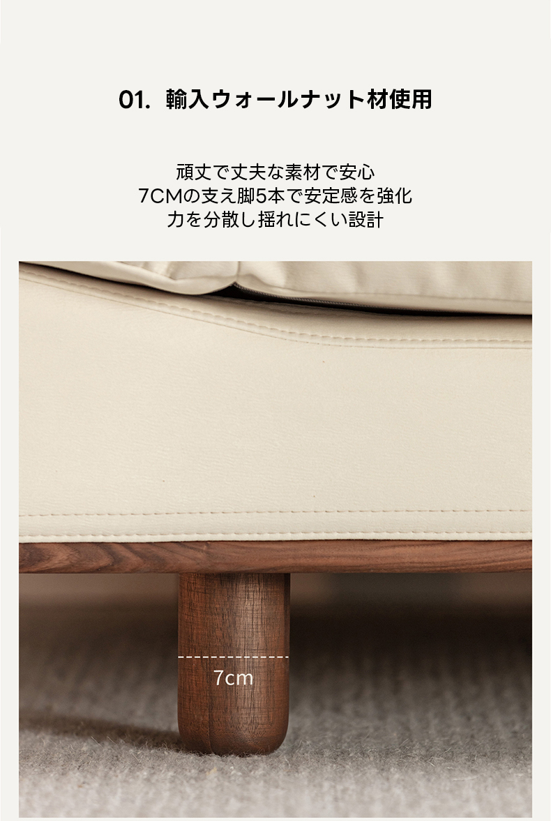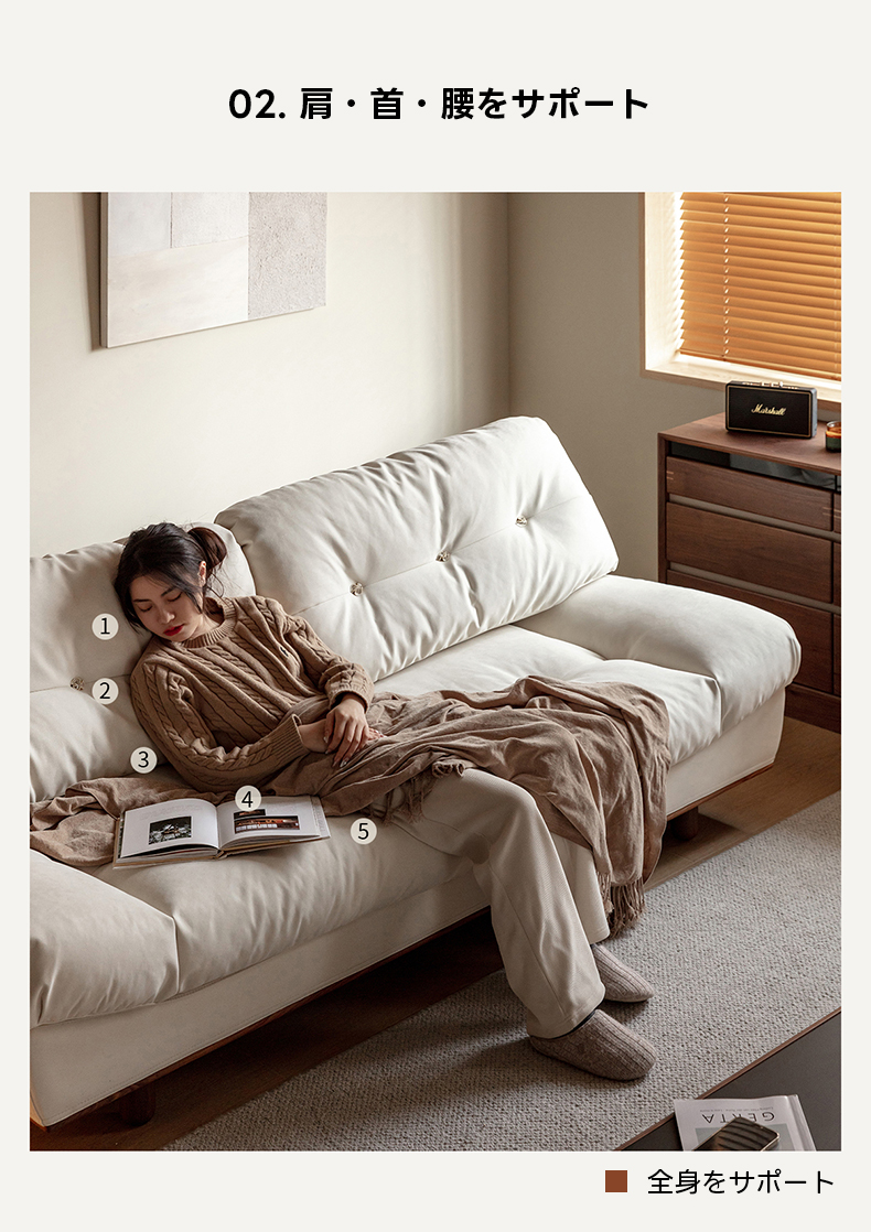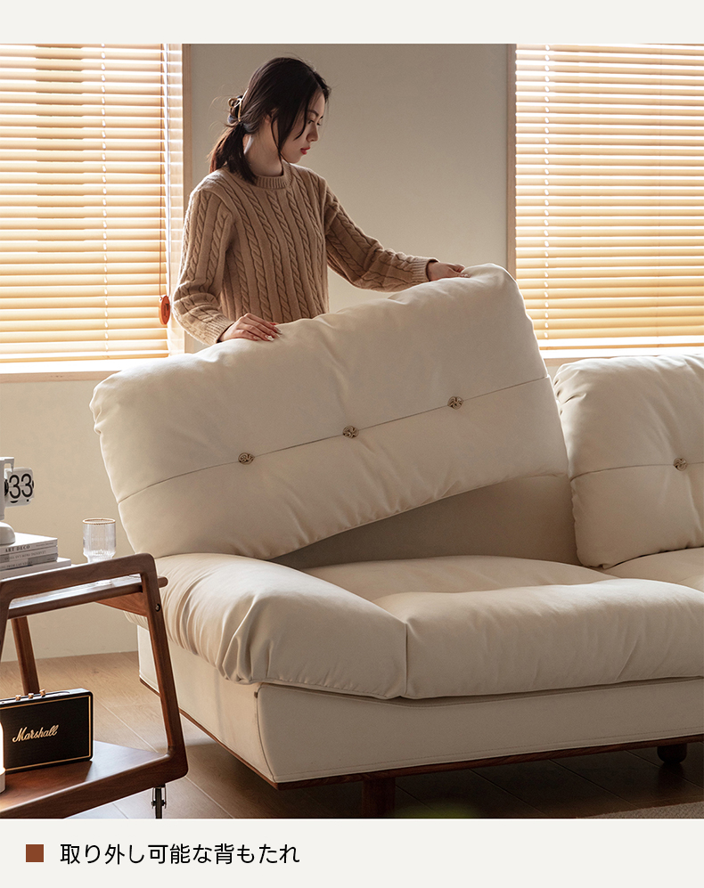 - 【快適な座り心地と高反発ウレタン】:ウォールナット材フレームと高反発ウレタンを使用し、長時間座っても疲れにくい快適な座り心地を提供します。グースフェザーとPP綿の背もたれがしっかりとしたサポートを実現し、リラックスした時間をお過ごしいただけます。