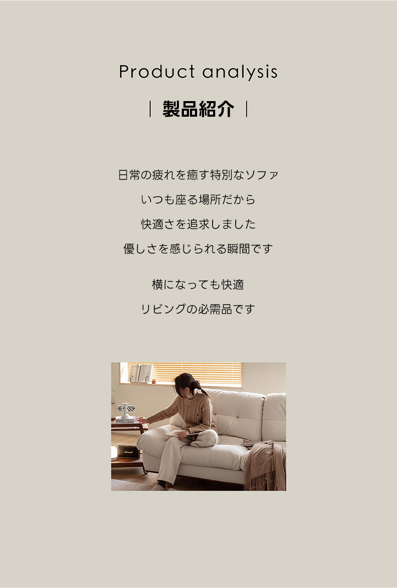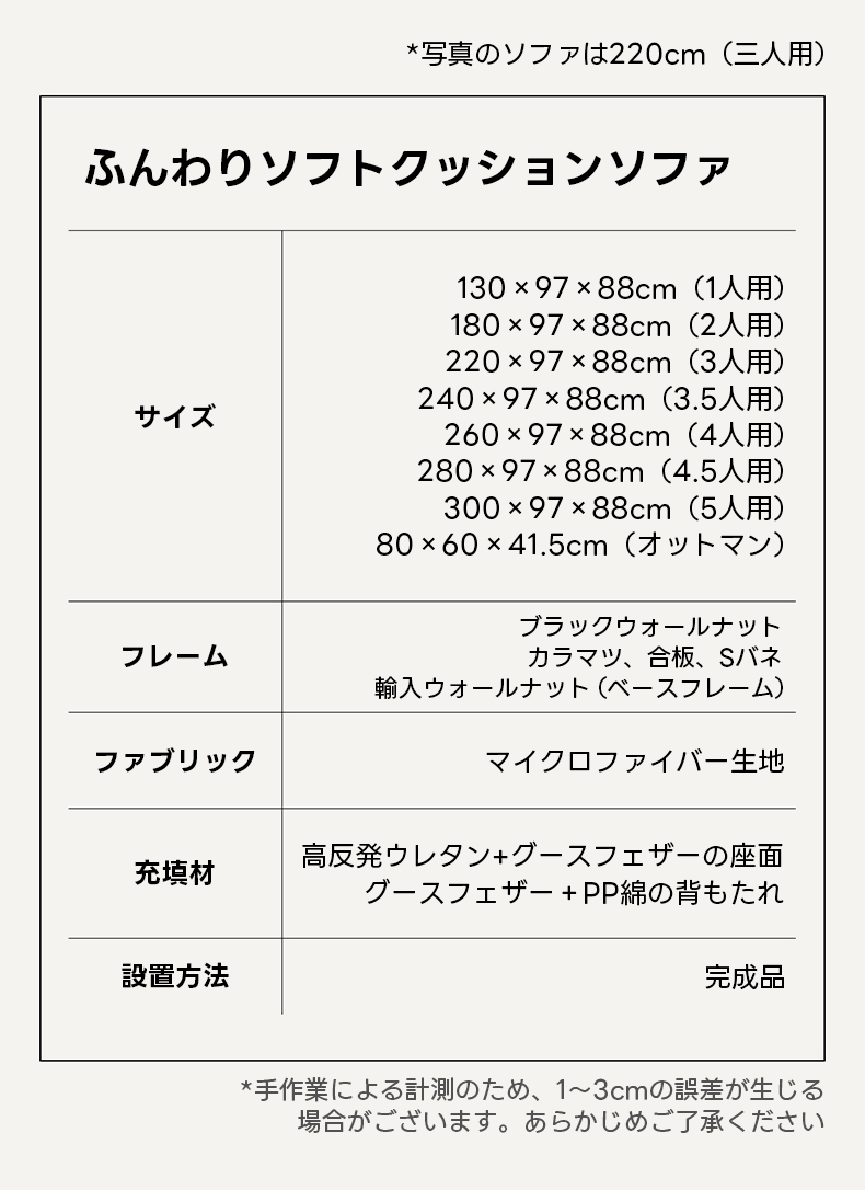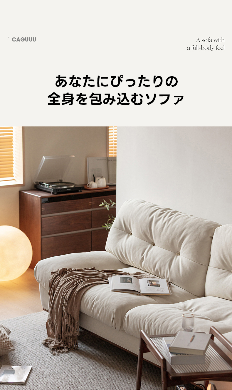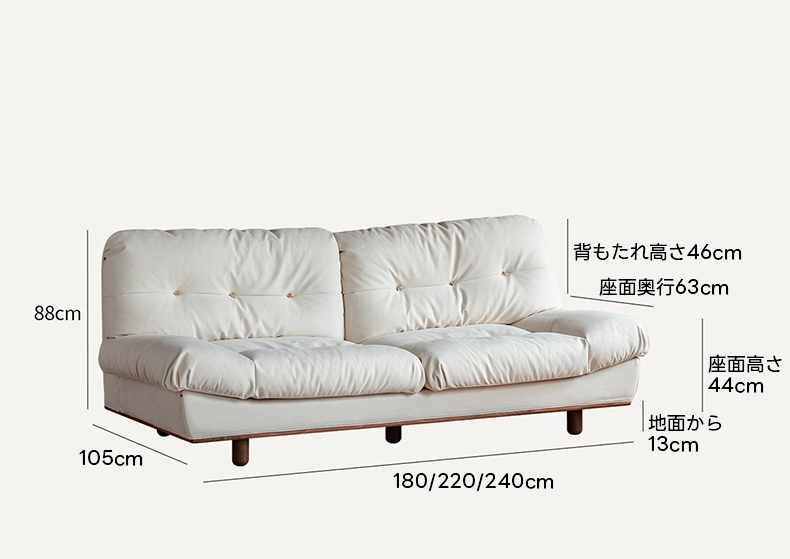- 【ユーザーに合わせたカスタマイズ】:180cm、220cm、240cmの3サイズから選べ、豊富なファブリックオプションでお好みに合わせてカスタマイズ可能。自分だけの特別なソファを作り上げることができます。