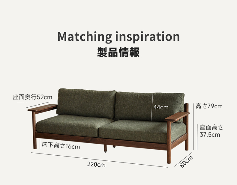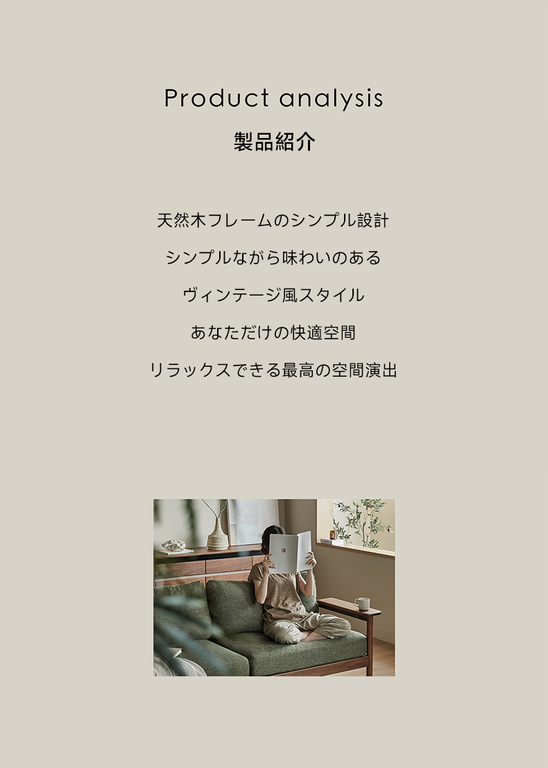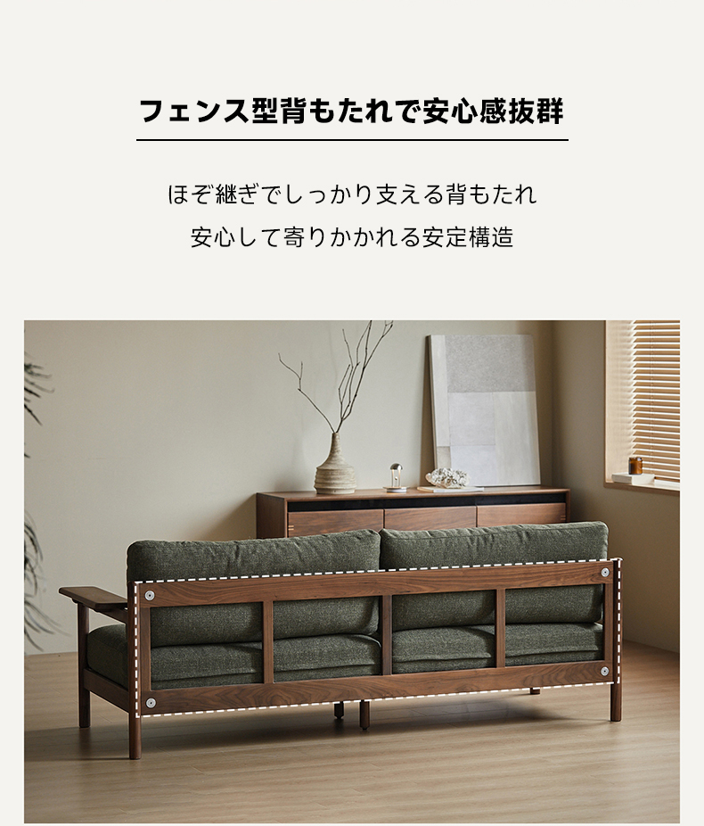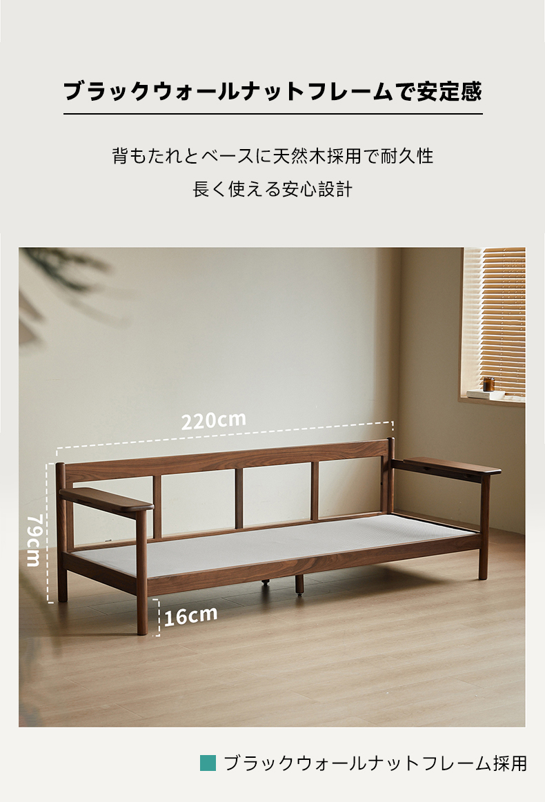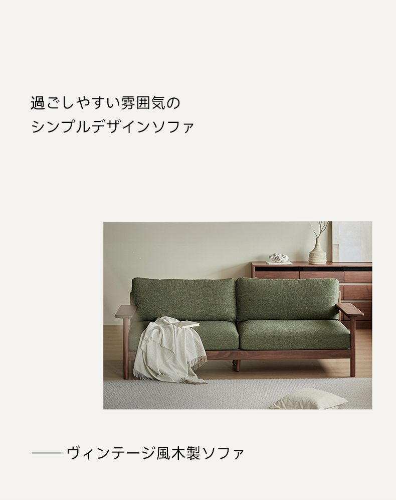 Woody Prime Walnut ウォールナット材 ヴィンテージ風木製ソファ【カスタマイズ可】