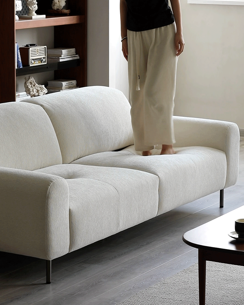 - 【高品質な素材と構造】:シェニール織の生地は肌に優しく、グースフェザーとウレタンのクッション材がふんわりとした座り心地を提供します。パイン材と合板のフレームで耐久性も抜群です。