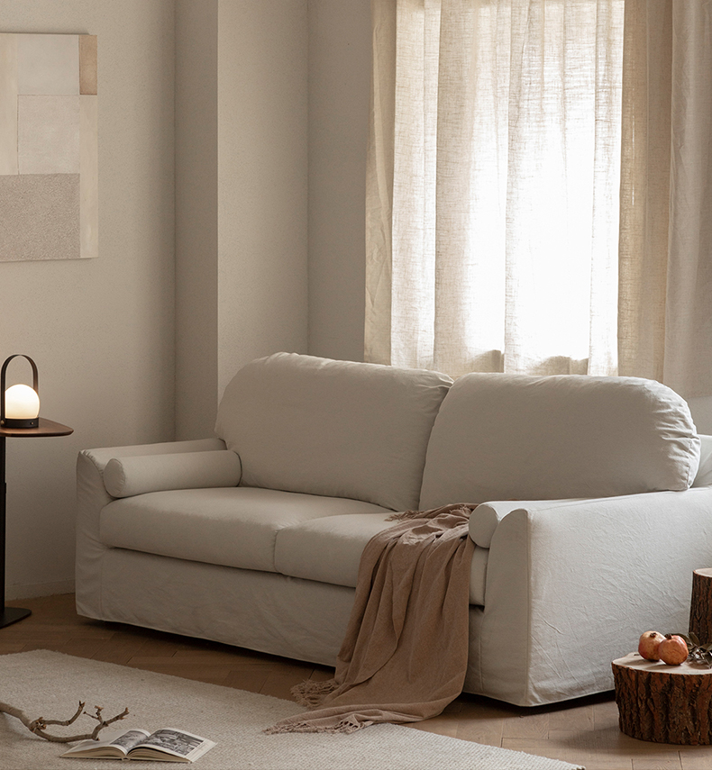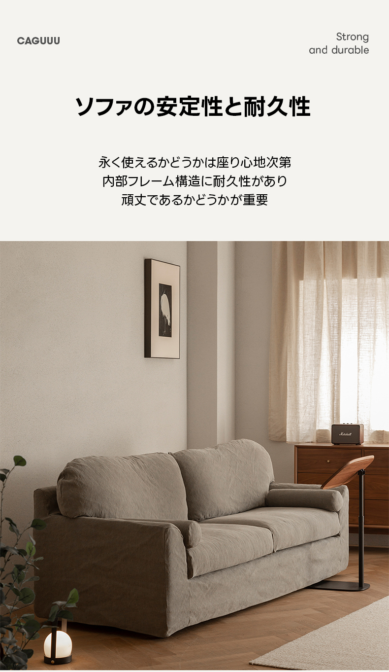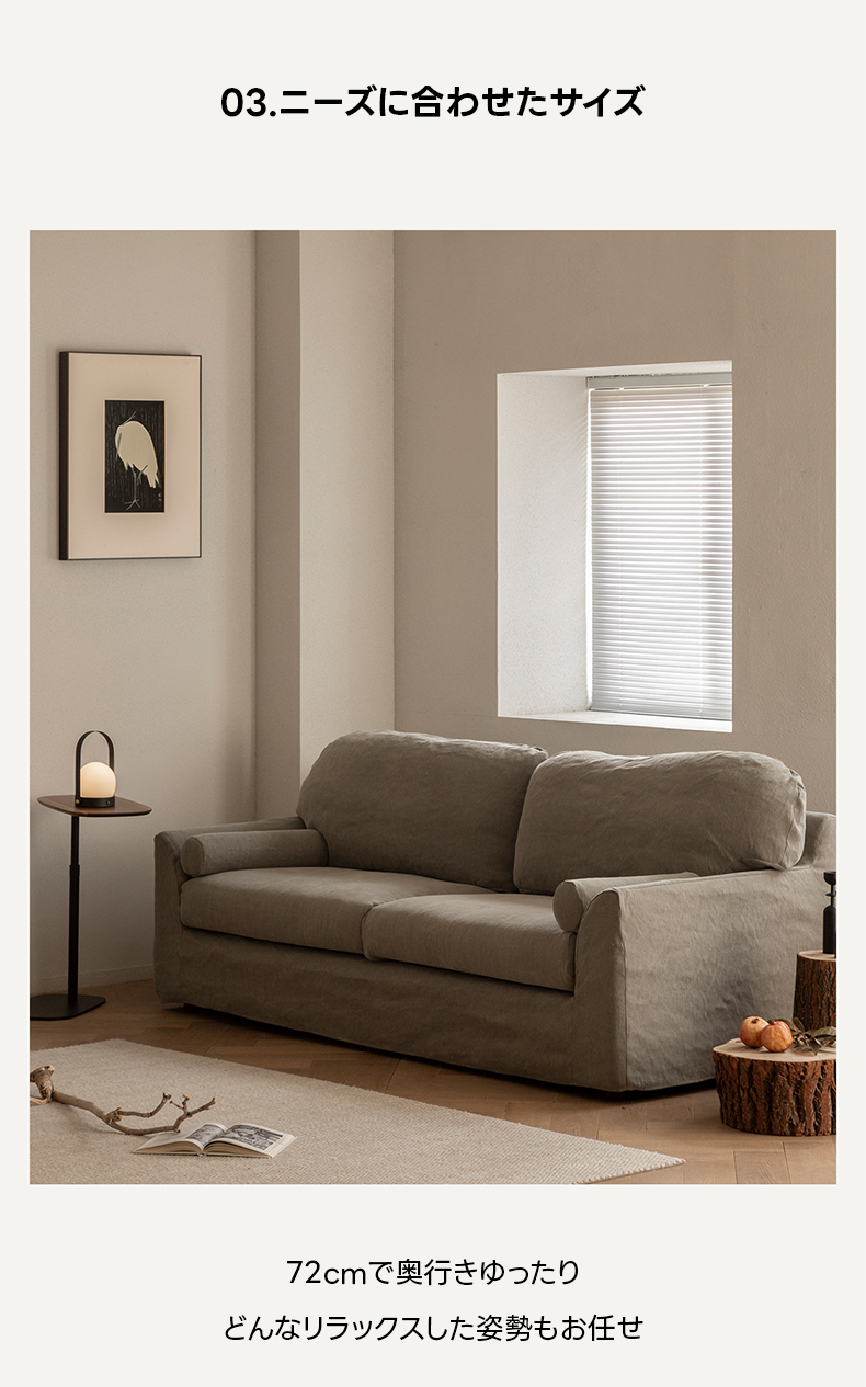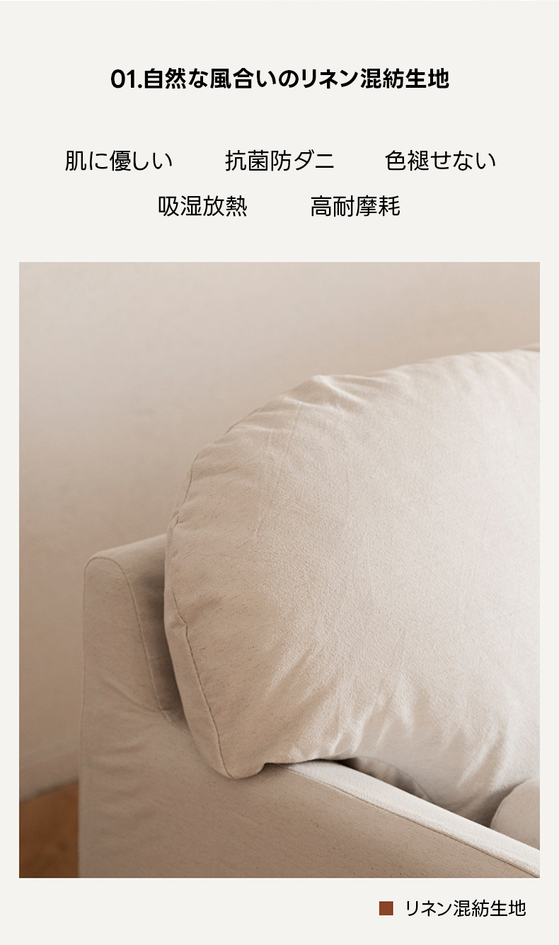 - 【高品質な素材とデザイン】リネン混紡生地を使用し、肌に優しい自然な手触りを提供。カラマツ材とS字バネのフレームが耐久性と安定感を保証します。