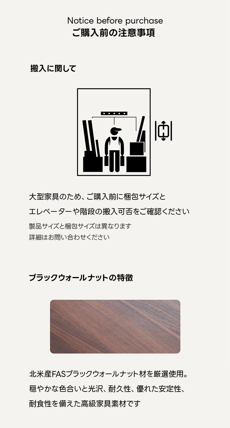 ※搬入不可等の理由による注文キャンセルは、ご返送にかかる費用をお客様にご請求いたします。ご注文前に大型家具の搬入方法をご確認ください。