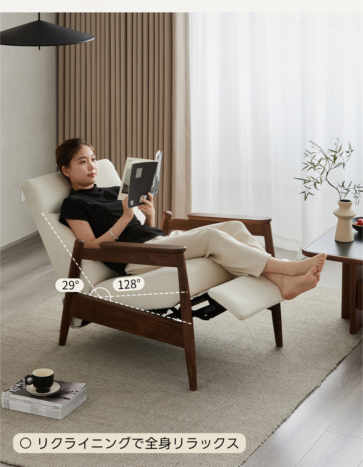 - 【高級感溢れるデザイン】:このリクライニングソファは、北米産FAS級のブラックウォールナット材を使用しており、美しい木目と均一な色合いが特徴です。シンプルモダンなスタイルで、どんなインテリアにも調和します。高級感を求める方にぴったりのアイテムです。