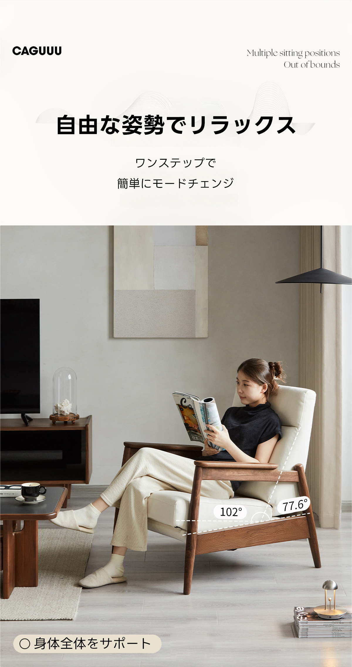- 【快適な座り心地】:高密度ウレタンを使用したクッションは、長時間座っても疲れにくく、柔らかな手触りのフェイクレザーが使用されています。調整可能なリクライニング機能で、読書やリラックスタイムに最適です。