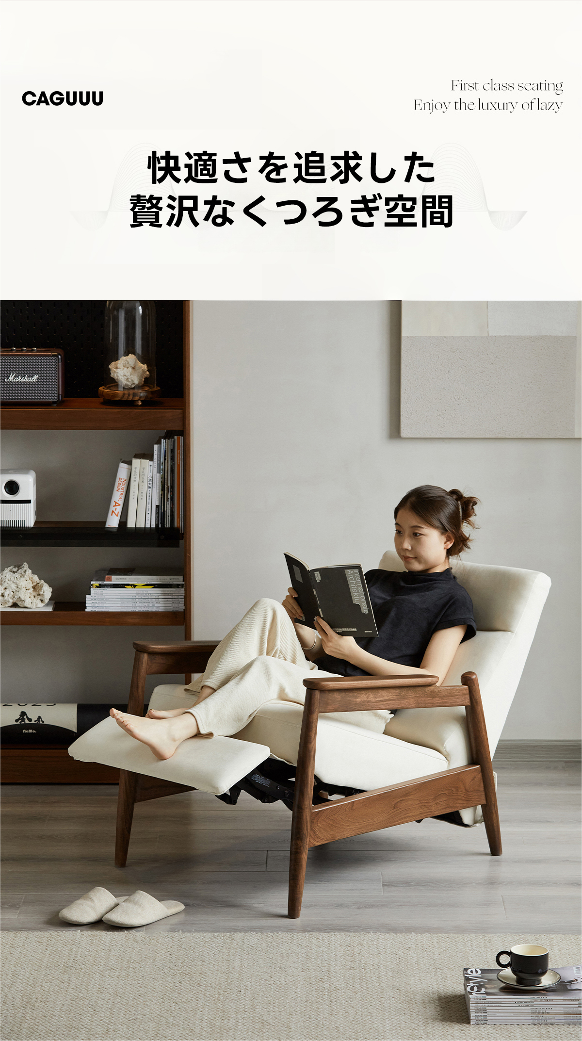 Woody Prime Walnut ラグジュアリーリクライニングソファ