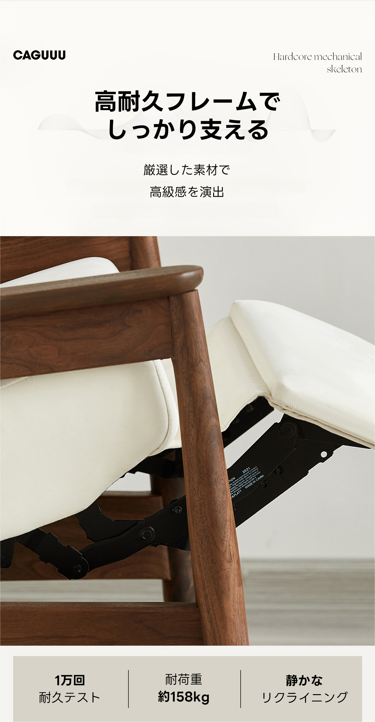 - 【耐久性と簡単なお手入れ】:高耐久フレームがしっかりとサポートし、耐荷重約158kgの頑丈さを誇ります。防水防汚素材を使用しているため、日常のお手入れも簡単で、長く美しい状態を保てます。