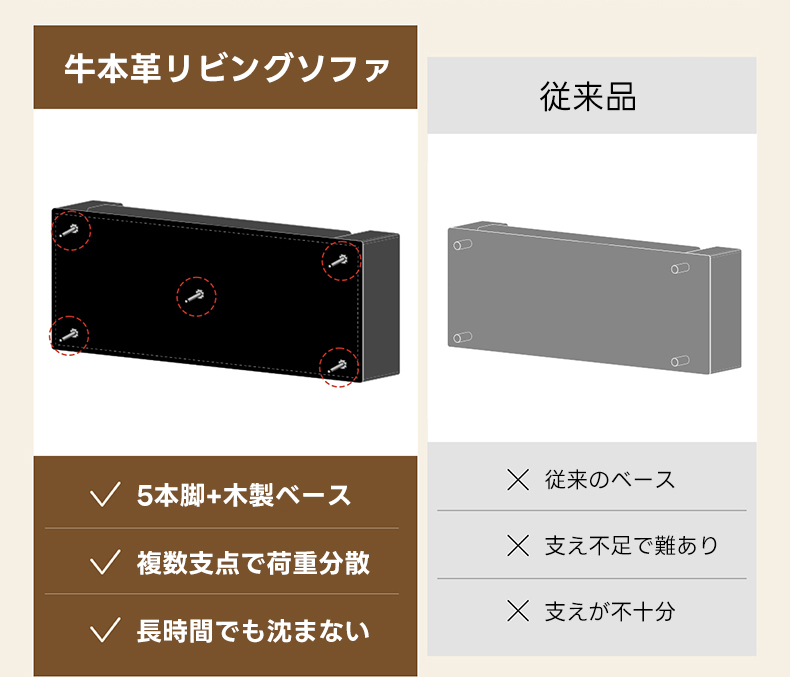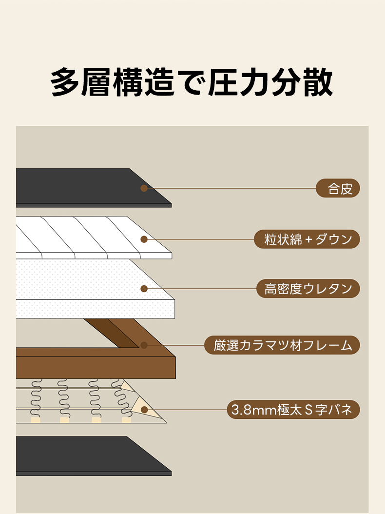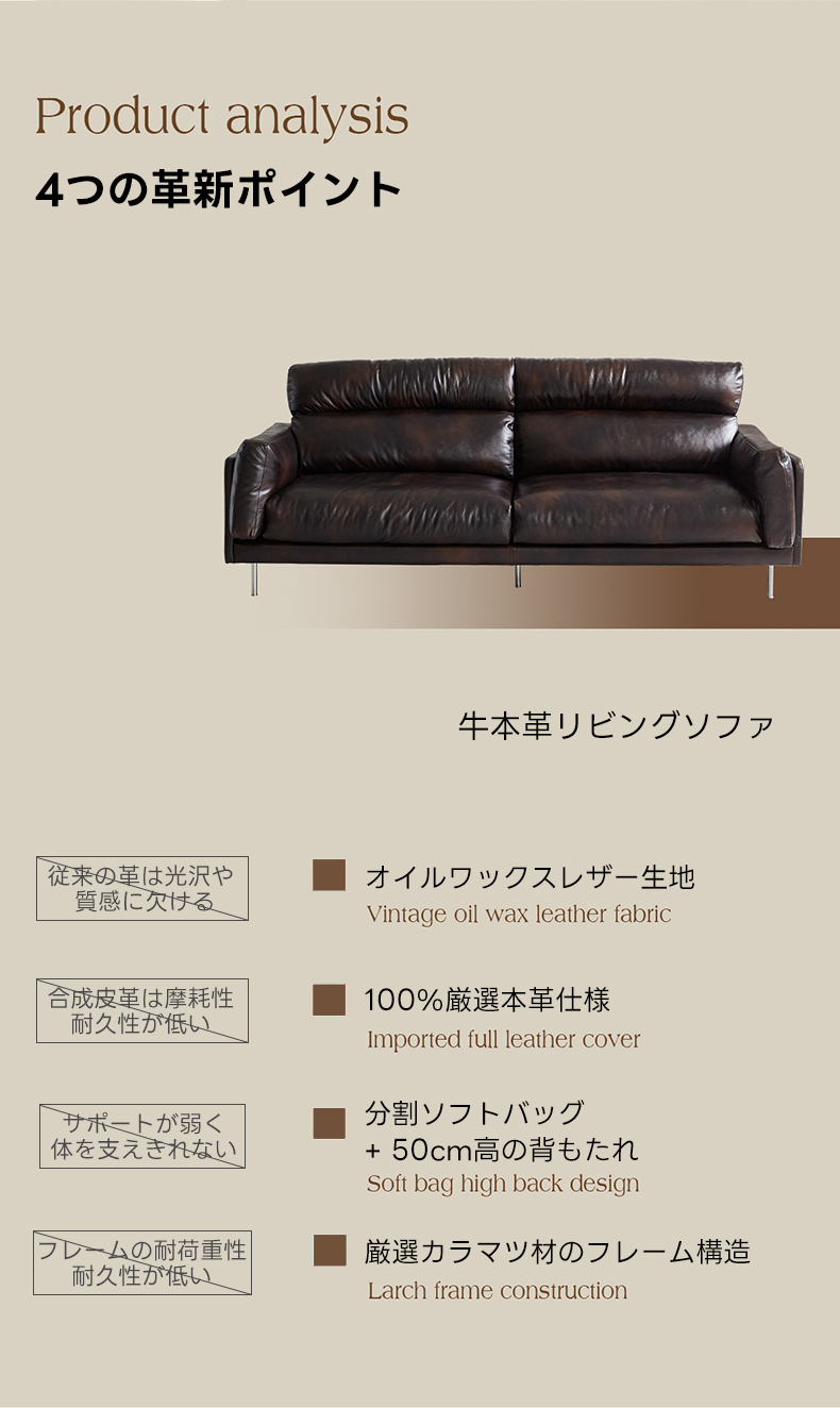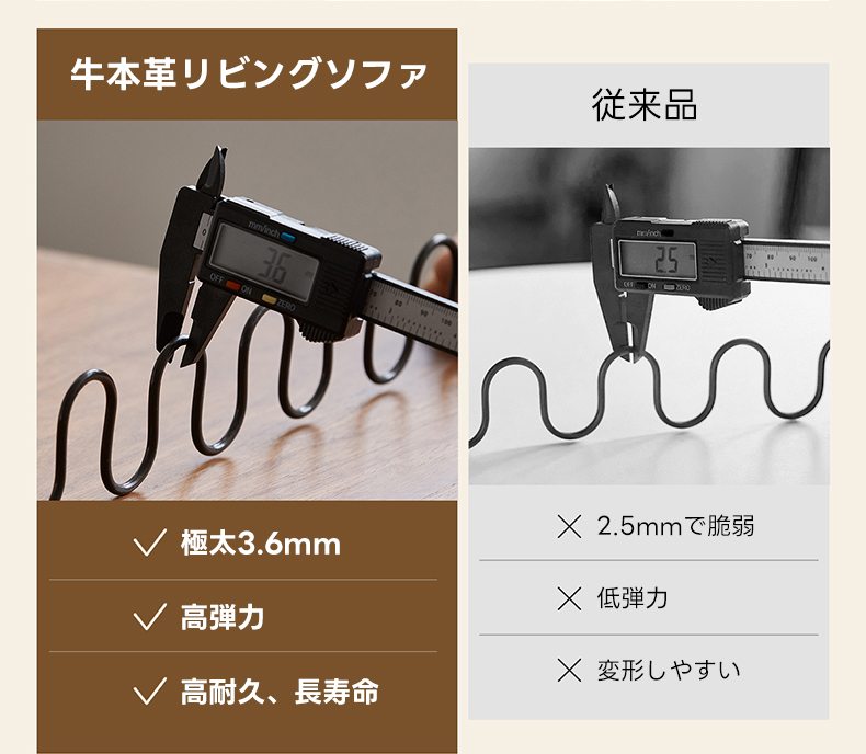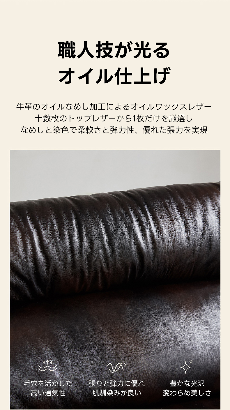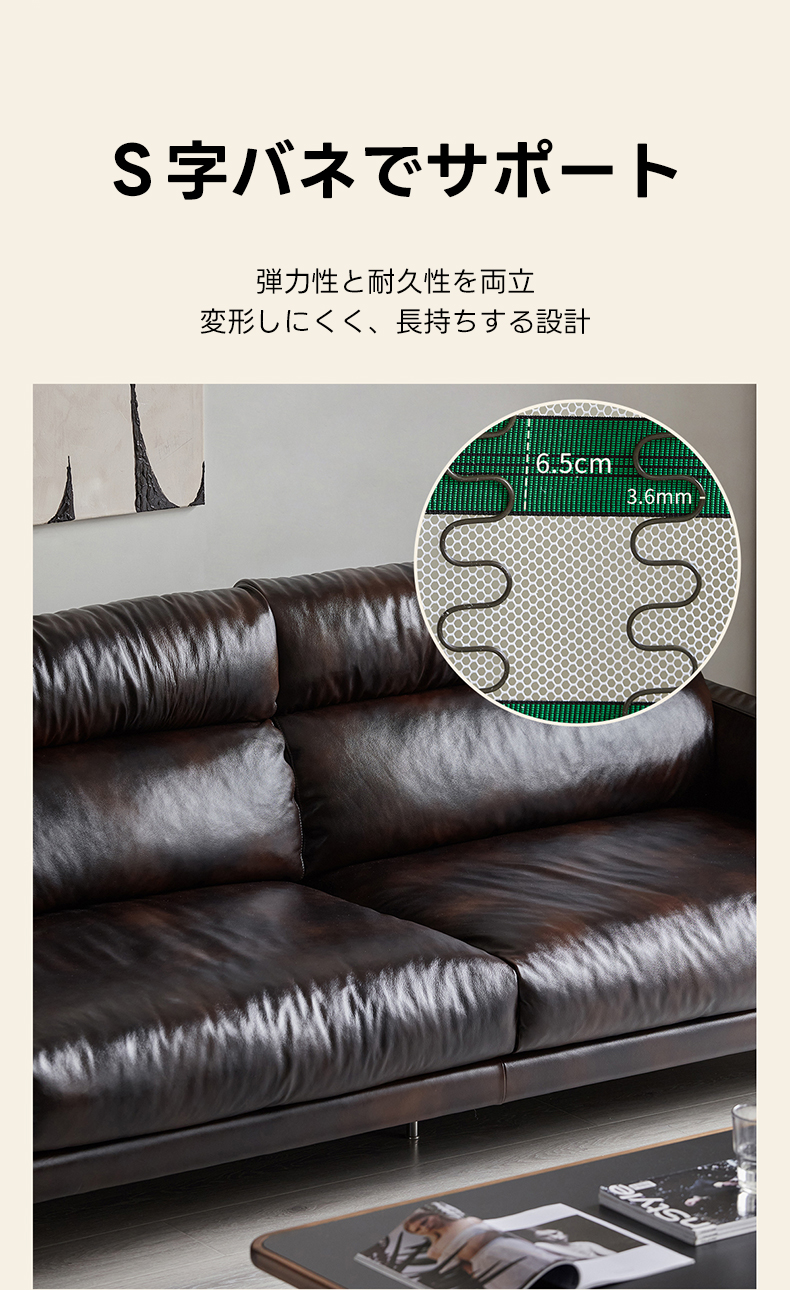 - 【高品質な素材とデザイン】:100%厳選された牛本革を使用し、オイルワックス仕上げで深みと光沢が増します。フレームには耐久性に優れたカラマツ材を使用し、3.6mmの極太S字バネが弾力性を提供します。