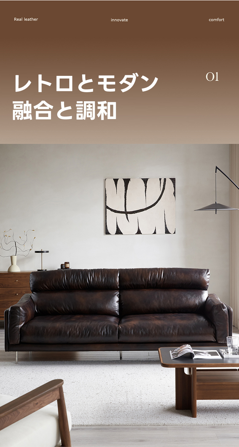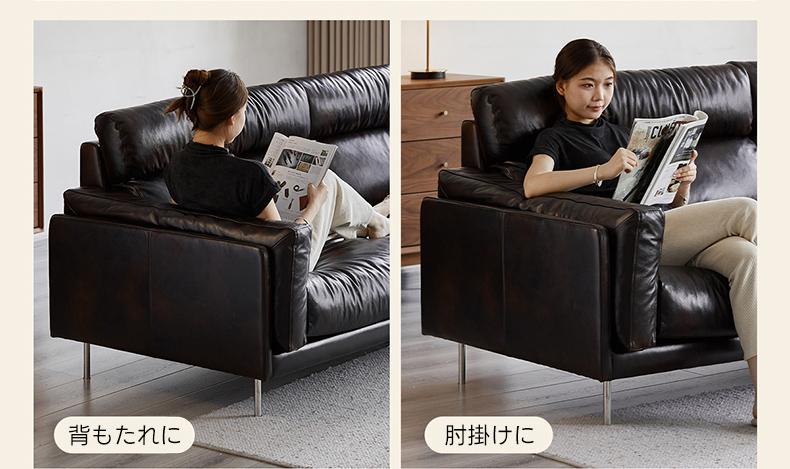 Woody Prime Walnut 牛本革リビングソファ【カスタマイズ可】
