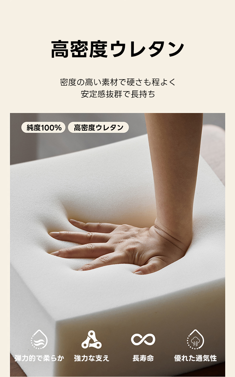 - 【安心のサポートと耐久性】:耐荷重性に優れたフレームと高密度ウレタンのクッションが、長時間の使用でもへたりにくい設計。安心して長くお使いいただける品質を提供します。