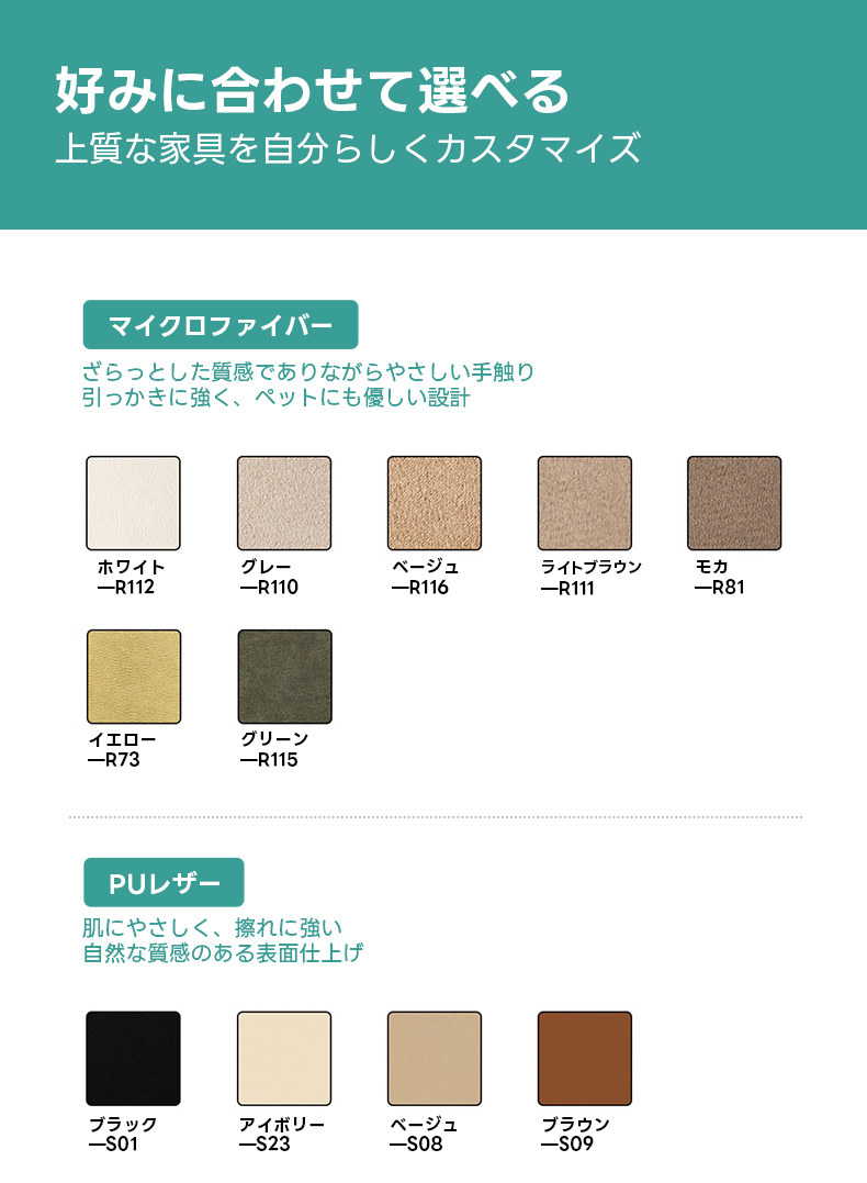 - 【カスタマイズ性とお手入れの簡単さ】:多彩なカラーと素材から選べるカスタマイズが可能。防水性があり、汚れが付きにくく、お手入れが簡単です。自分好みのデザインに仕上げることができます。