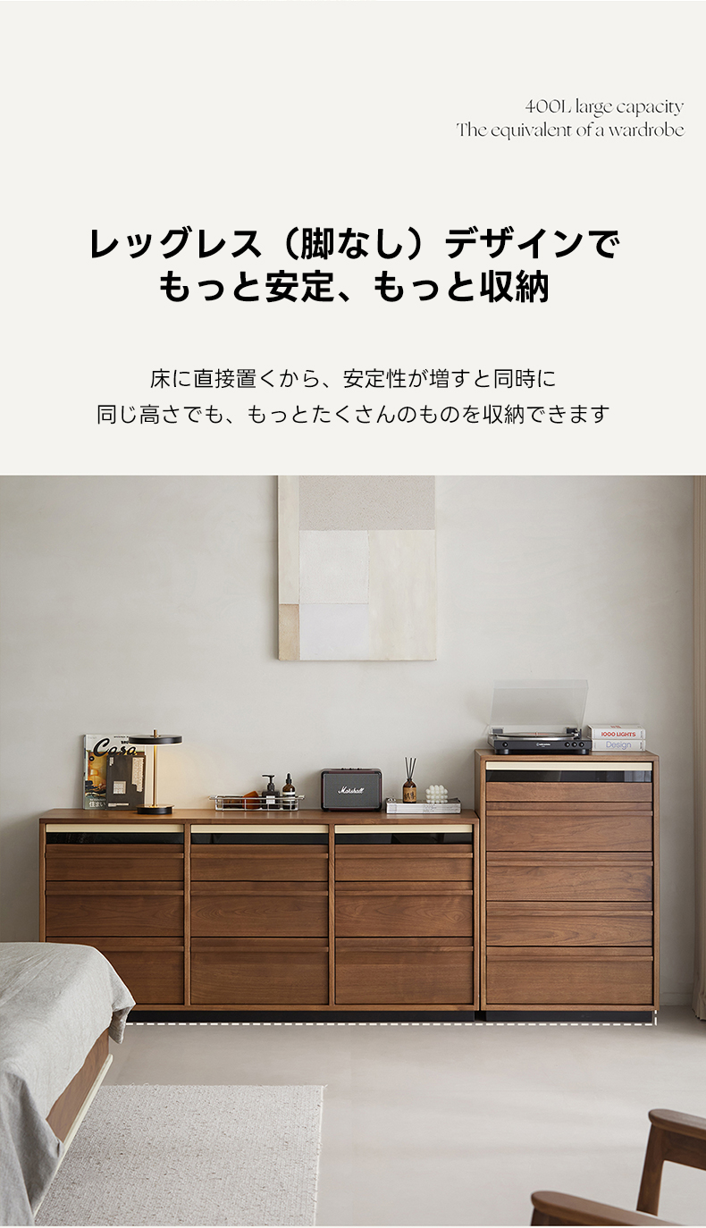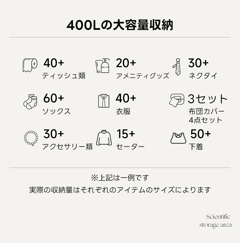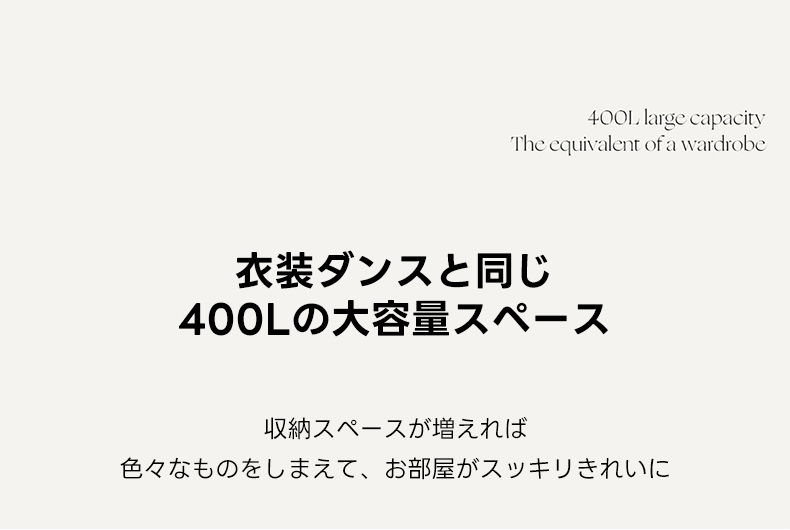 - 【大容量収納&多用途】400Lの大容量スペースを持ち、衣類やアクセサリー、日用品をしっかり収納できます。リビングやダイニング、玄関など、さまざまな場所で活躍します。