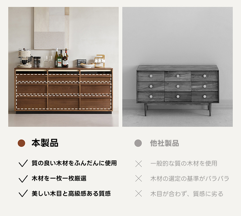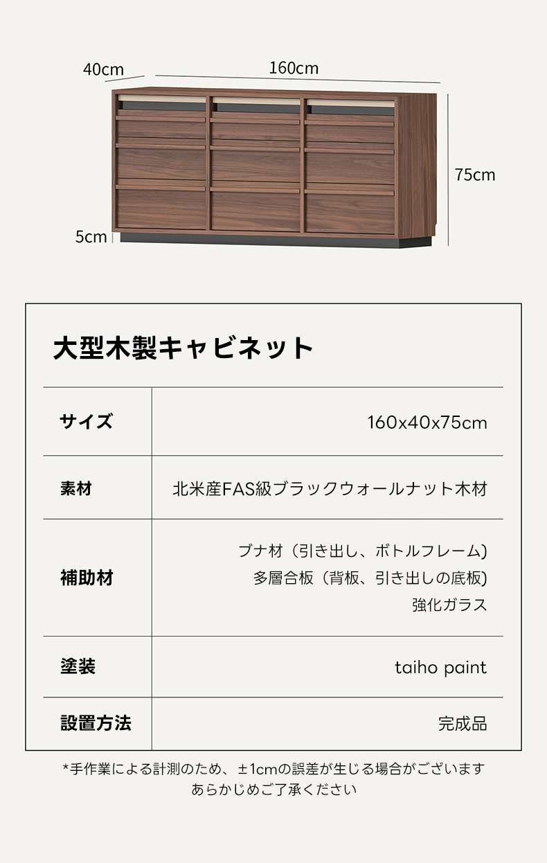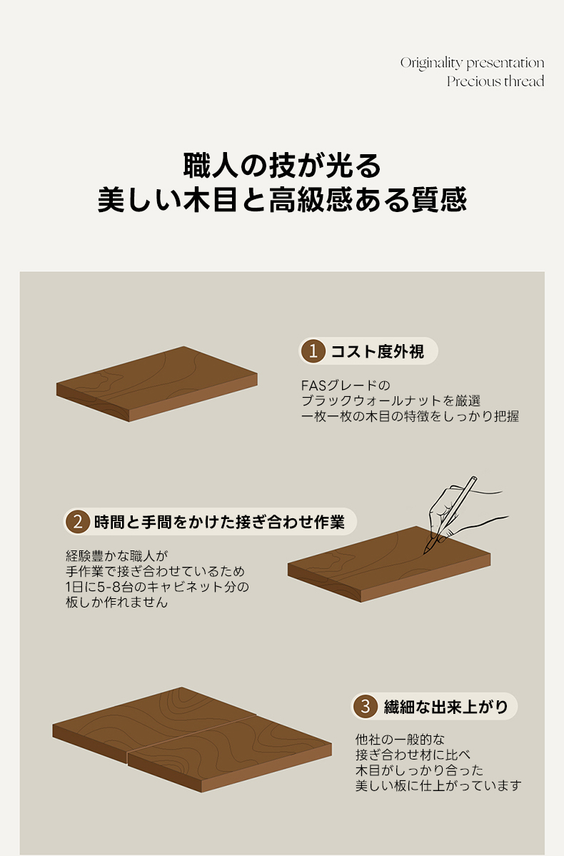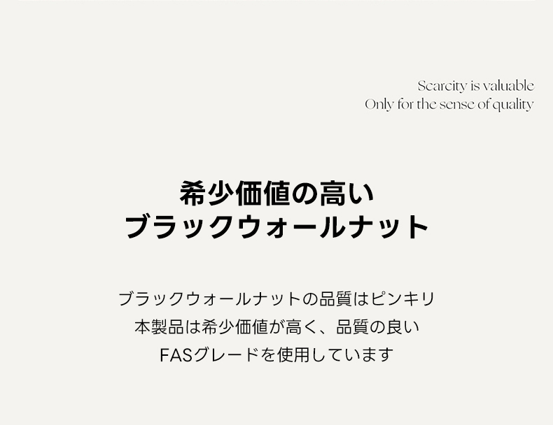- 【高品質ウォールナット材使用】北米産のFAS級ブラックウォールナットを使用し、耐久性と美しい木目が魅力です。職人の技が光る逸品です。